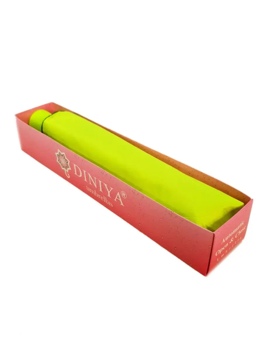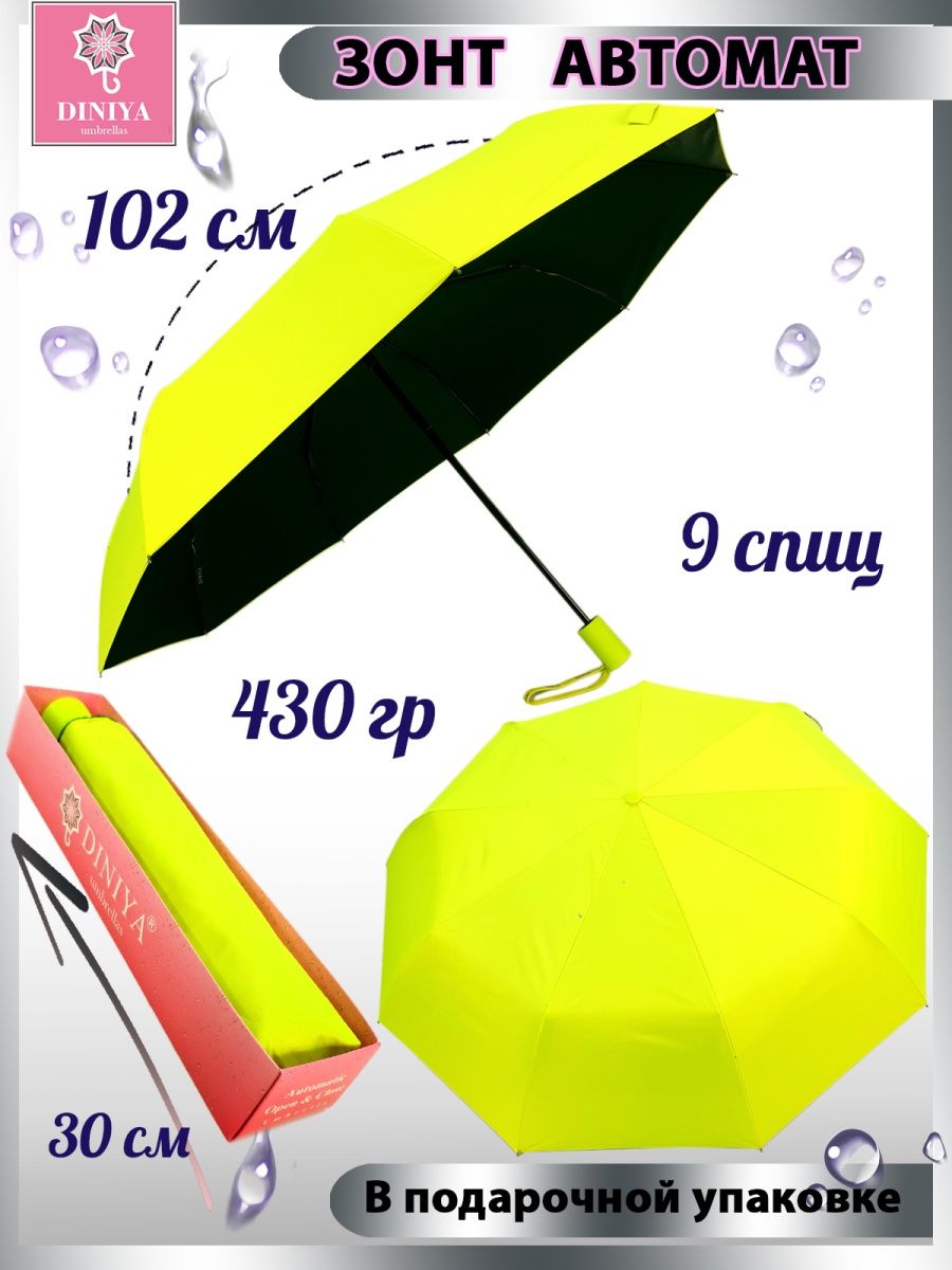 Описание: Классический однотонный двухсторонний женский зонт автомат оснащён надёжным автоматическим механизмом, который удобен при раскрытии и закрытии нажатием на кнопку. Складной зонт имеет прочный стальной каркас и оснащён системой антиветер. У зонта 9 спиц комбинированных из стекловолокна (фибергласс) и металла, диаметр купола зонта 102 см., ткань купола плотный эпонж 190Т, длина в сложенном виде - 30 см., чехол в комплекте. Модель этого зонта в нашем магазине представлена в модных кислотных цветах. Этот маленький компактный аксессуар прекрасно подойдет для девушек, женщин, девочек, Наш фирменный зонт DINIYA уверенно противостоит ветру и непогоде. На разных устройствах цвета могут немного различаться.