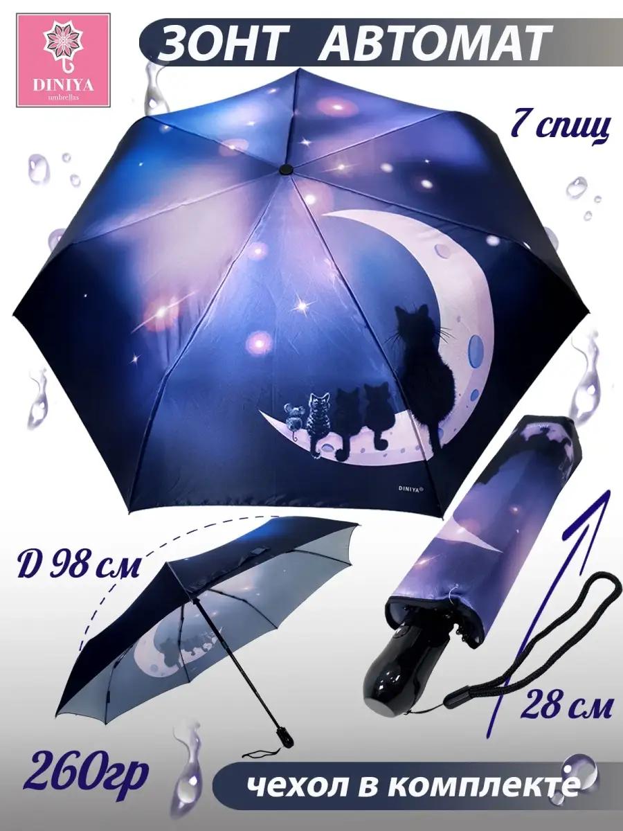 Описание: Зонт-автомат для подростков "Diniya" - стильный, удобный и надежный аксессуар, который защитит от дождя и солнца. Он выполнен из высококачественных материалов и имеет современный дизайн с изображением кошек и котят. Этот зонт подойдет как девочкам, так и женщинам, которые ценят комфорт и стиль. Зонт имеет прочный каркас из стали, 7 спиц из стекловолокна и сатина, а также чехол. Диаметр купола составляет 98 сантиметров, а в сложенном виде он легко помещается в сумочке. Вес зонта составляет всего 266 грамм, что делает его удобным для повседневного использования. В комплекте к зонту идет двойной непромокаемый чехол яркого неонового цвета, который можно использовать как для защиты от дождя, так и для украшения аксессуара. Зонт легко открывается и закрывается одним нажатием на кнопку. Этот зонт - отличный выбор для тех, кто ценит качество и стиль. Он станет незаменимым помощником во время прогулок, поездок на природу или путешествий. Закажите зонтик "Diniya" и защитите себя от непогоды с комфортом и удовольствием!