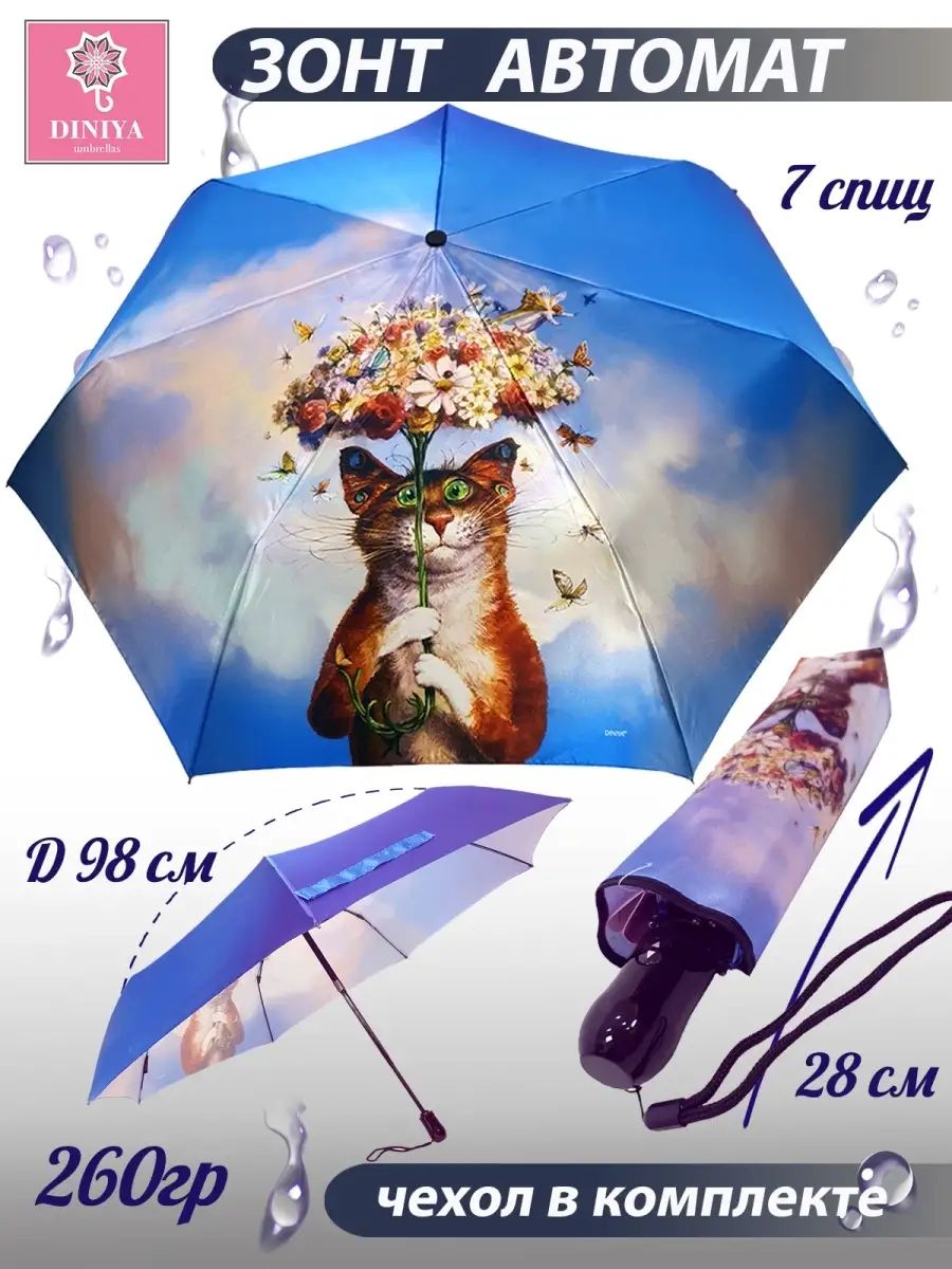 Описание: Зонт-автомат для подростков "Diniya" - стильный, удобный и надежный аксессуар, который защитит от дождя и солнца. Он выполнен из высококачественных материалов и имеет современный дизайн с изображением кошек и котят. Этот зонт подойдет как девочкам, так и женщинам, которые ценят комфорт и стиль. Зонт имеет прочный каркас из стали, 7 спиц из стекловолокна и сатина, а также чехол. Диаметр купола составляет 98 сантиметров, а в сложенном виде он легко помещается в сумочке. Вес зонта составляет всего 266 грамм, что делает его удобным для повседневного использования. В комплекте к зонту идет двойной непромокаемый чехол яркого неонового цвета, который можно использовать как для защиты от дождя, так и для украшения аксессуара. Зонт легко открывается и закрывается одним нажатием на кнопку. Этот зонт - отличный выбор для тех, кто ценит качество и стиль. Он станет незаменимым помощником во время прогулок, поездок на природу или путешествий. Закажите зонтик "Diniya" и защитите себя от непогоды с комфортом и удовольствием!