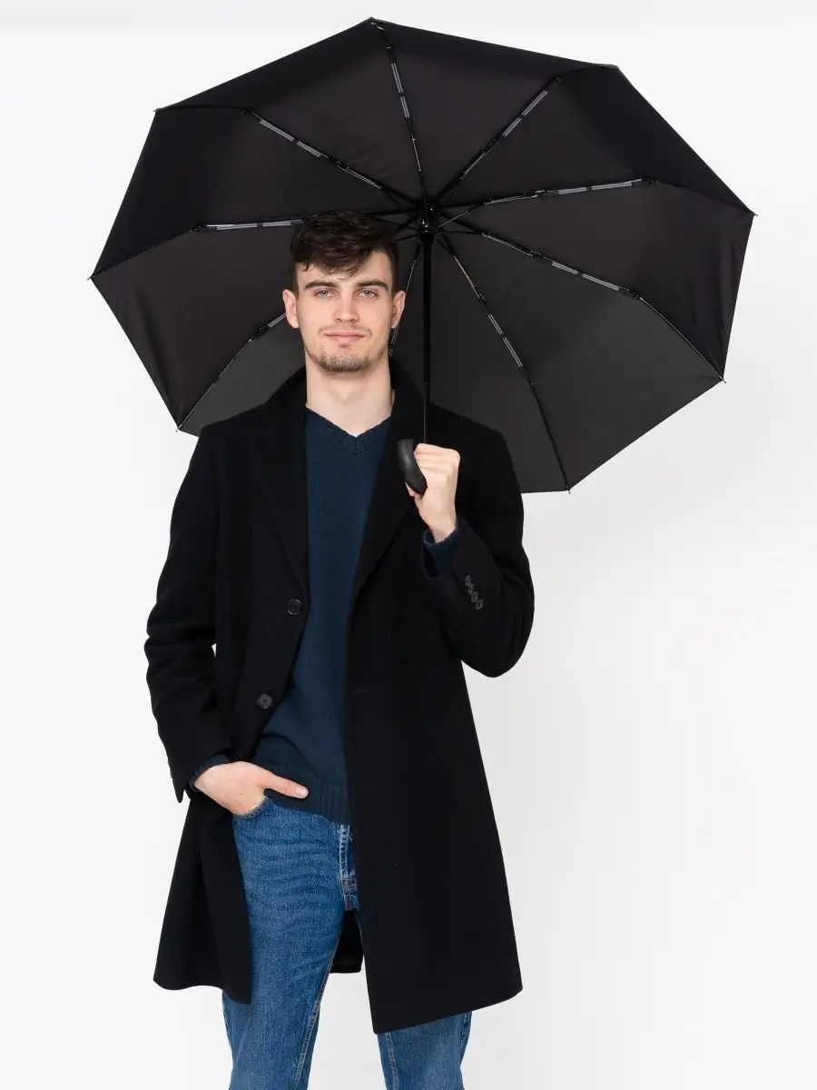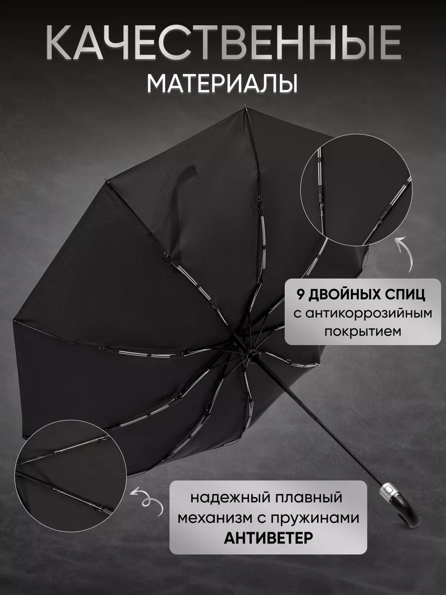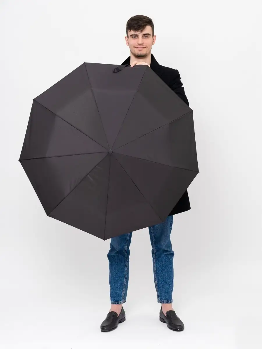 Описание: Черный зонт - хит на все времена. Основное достоинство черного зонта - универсальность. Он подходит мужчинам и женщинам, отлично сочетается практически с любой одеждой. Главными особенностями зонта-автомата являются их оригинальность, универсальность и неповторимый стиль. Зонт-автомат - креативный и нужный подарок на годовщину свадьбы, новоселье, День Рождения, Новый Год, 8 марта. Это очень необычный и модный сегодня аксессуар, который позволяет с большим комфортом прогуливаться под дождем вместе со своей половинкой. Настоящий показатель вкуса, стиля, даже статуса. Складной, однотонный зонт не только защитит от капризов межсезонья, но и сделает пасмурный день ярче. Самый оптимальный зонт, который складывается в 3 раза. Зонт-автомат - тип, набирающий популярность. Он очень удобен в использовании, так как при нажатии кнопки выдвигается стержень и раскрывается купол, причем происходит все быстро. Закрытие тоже осуществляется одной лишь кнопкой. Спицы изготовлены из стали, не сломают ни ветер, ни другие природные явления. Имеет систему антиветер. Это — специальная пружина, которая защищает от поломок и выворачивания при сильном ветре. Купол может выгнуться, но при этом не сломается. Ткань эпонж - смесь полиэстера с хлопком. Его преимущество перед остальными моделями заключается в способности отталкивать влагу. Таким образом, поверхность купола всегда остается идеально сухой, и у вас пропадает необходимость долго и тщательно сушить зонт. Благодаря добавлению волокон хлопка купол прочный и долго служит. Такой зонтик достаточно несколько раз встряхнуть перед тем, как зайти в помещение. Чтобы зонт надолго сохранил свои свойства и безупречный внешний вид, он нуждается в правильном уходе. Сушить его нужно в полураскрытом состоянии не рядом с отопительными приборами, а свободно висящим на ручке двери или крючке. Наш семейный зонт напоминает модели dualbrella, lovers umbrella, зонт трость.