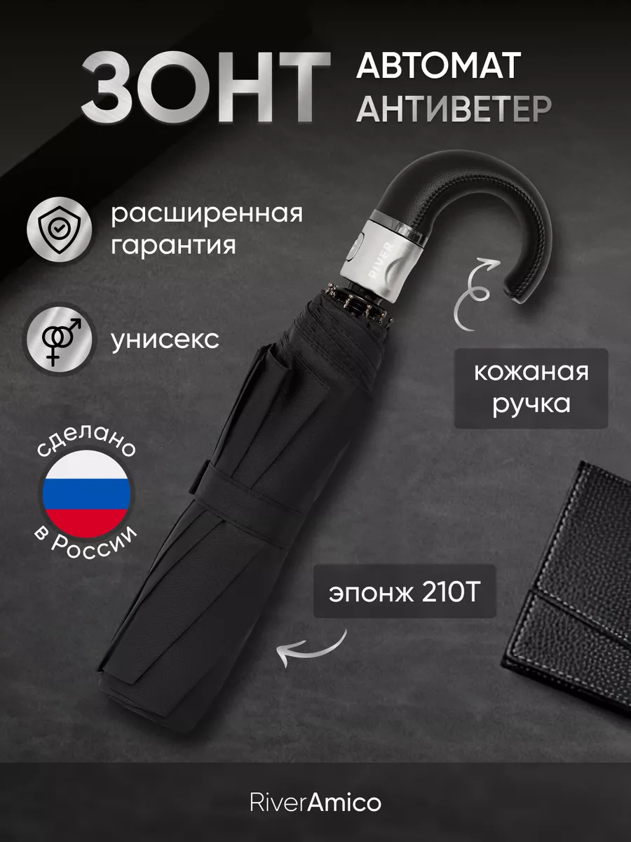 Зонт автомат однотонный антиветер с кожаной ручкой