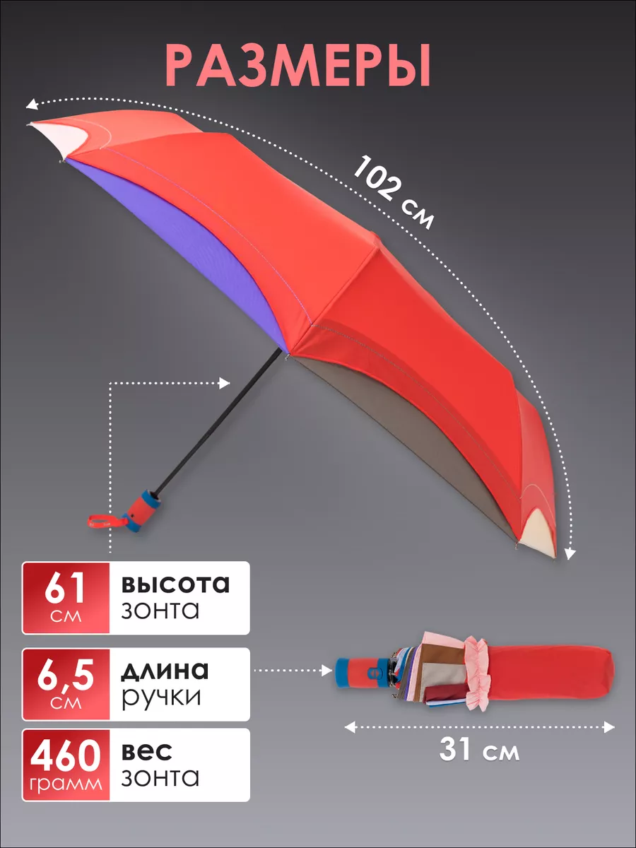 Описание: Обратите внимание, что цвет ручки предоставленного зонта может претерпеть изменения по сравнению с тем, что изображен на фотографии. Однако, несмотря на это, зонт является весьма незаменимым аксессуаром, который не только может спасти от непогоды, но и благоприятно дополнить повседневный образ. К тому же, выбор ярких и эффектных тональностей способен не только поднять настроение, но и создать впечатление на окружающих. Благодаря удобному автоматическому механизму, открыть и закрыть купол зонта становится проще простого, что, в свою очередь, позволяет сэкономить дорогое время, а это, в свою очередь, уменьшает вероятность омочиться под дождем. Пользуясь красивыми яркими красками, Вы без труда окажетесь в лучшем настроении и сможете зарядиться энергией на весь день. Стильный и практичный зонт с удобным автоматическим управлением намного удобнее в использовании, особенно если одна рука занята тяжелыми пакетами или сумками. В отличии от других элементов гардероба, этот зонт является универсальным подарком, который подходит как для взрослой женщины или девушки, так и для маленьких девочек и подростков. Кроме того, наряду со своим основным предназначением зонт можно использовать для фотосессий или защиты от ярких солнечных лучей. Конечно же, с таким зонтом Вы всегда будете выглядеть стильно и незабываемо в плохую погоду.