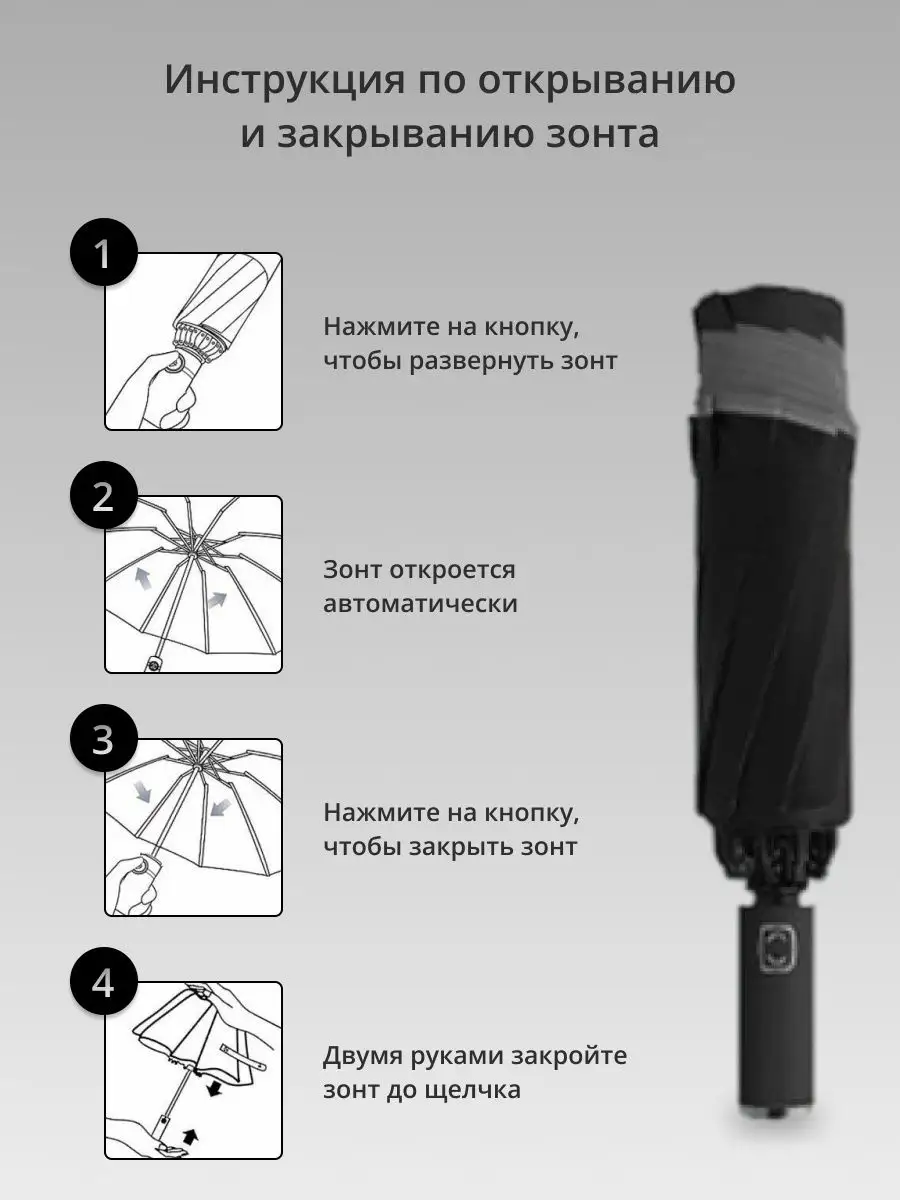 Описание: Мы рады представить Вам новейшую продукцию – мужской зонт автоматический складной для двоих с системой механизма обратного складывания, вся вода остается внутри. В сложенном виде вместительный и компактный, можно взять с собой на повседневную осеннюю прогулку, в офис на работу. Надежный крепкий каркас устойчив к резким порывам ветра. Усиленная конструкция спиц из стекловолокна, залитого эпоксидной смолой, делает семейный зонтик легким и удобным. Реверсивная непромокаемая модель унисекс имеет свето-отражающую ленту окантовку, для безопасности на дороге в темное время суток, нескользящую резиновую ручку. Благодаря большому диаметру купола и функции антишторм Вы не намокните и будете защищены от ветра и дождя в весеннюю непогоду. Быстросохнущий материал стильного зонта изготовлен из водонепроницаемой ткани высокой плотности и отличного качества, а виниловый солнцезащитный слой спасет от УФ излучения. Приобретайте дорожный женский зонт полный автомат для себя или в подарок мужу, подруге, порадуйте своих близких уже сегодня облегченным классическим изделием.