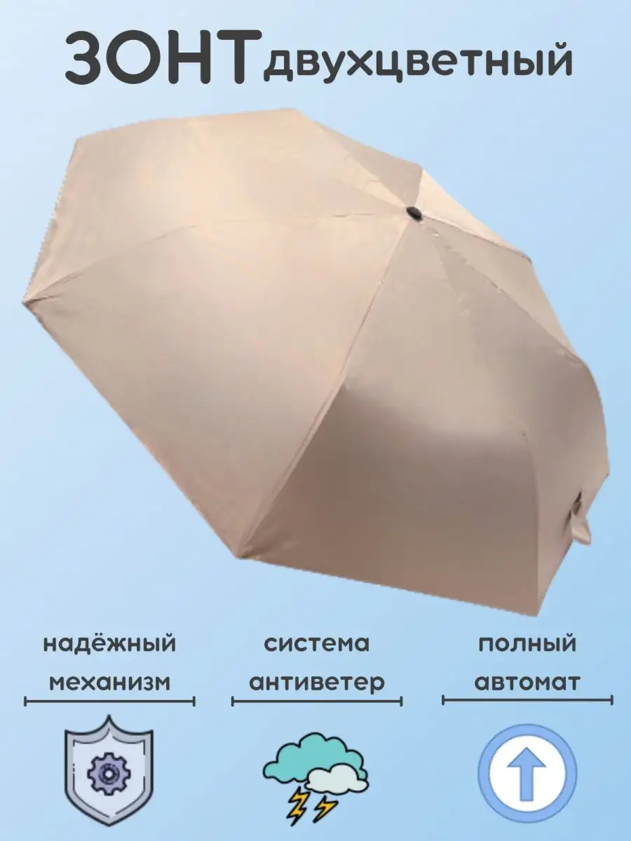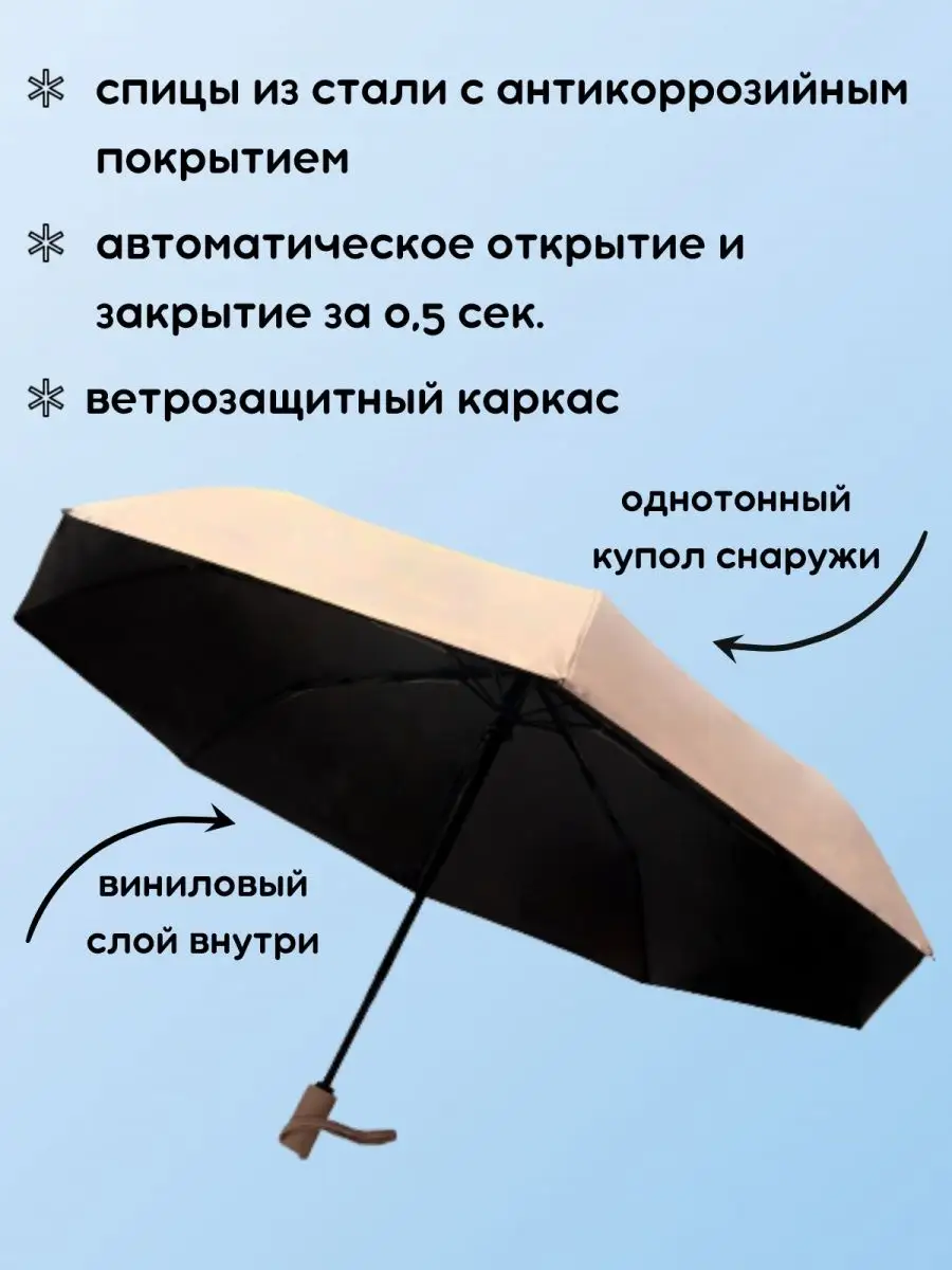 Описание: Автоматический компактный облегчённый зонт весом 350 грамм. Красивый дизайн в трендовых цветах. Внутренняя часть зонта чёрного цвета. Трёхслойный материал: водонепроницаемое гидрофобное покрытие, ткань высокой плотности и внутреннее виниловое покрытие. Тем самым зонт выдерживает не только сильный ветер и сильный дождь, но и блокирует УФ-лучи. Зонт оснащён системой антиветер. Основа каркаса зонта выполнена из надежного и прочного материала- авиационной стали с антикоррозийным покрытием. Хвостовая часть зонта выполнена из фибергласса, что позволяет повысить ветроустойчивость и прочность. Автоматическое открытие и закрытие за 0,5 секунды. Зонт не просвечивается и имеет ветрозащитный каркас. Лаконичный и стильный, что не испортит, а даже дополнит Ваш образ. Матовая стильная ручка выполнена из мягкого антискользящего материала. Зонтик подойдёт не только для взрослых, но и для детей в школу, на прогулку. Кроме того, стильный зонт станет прекрасным подарком.