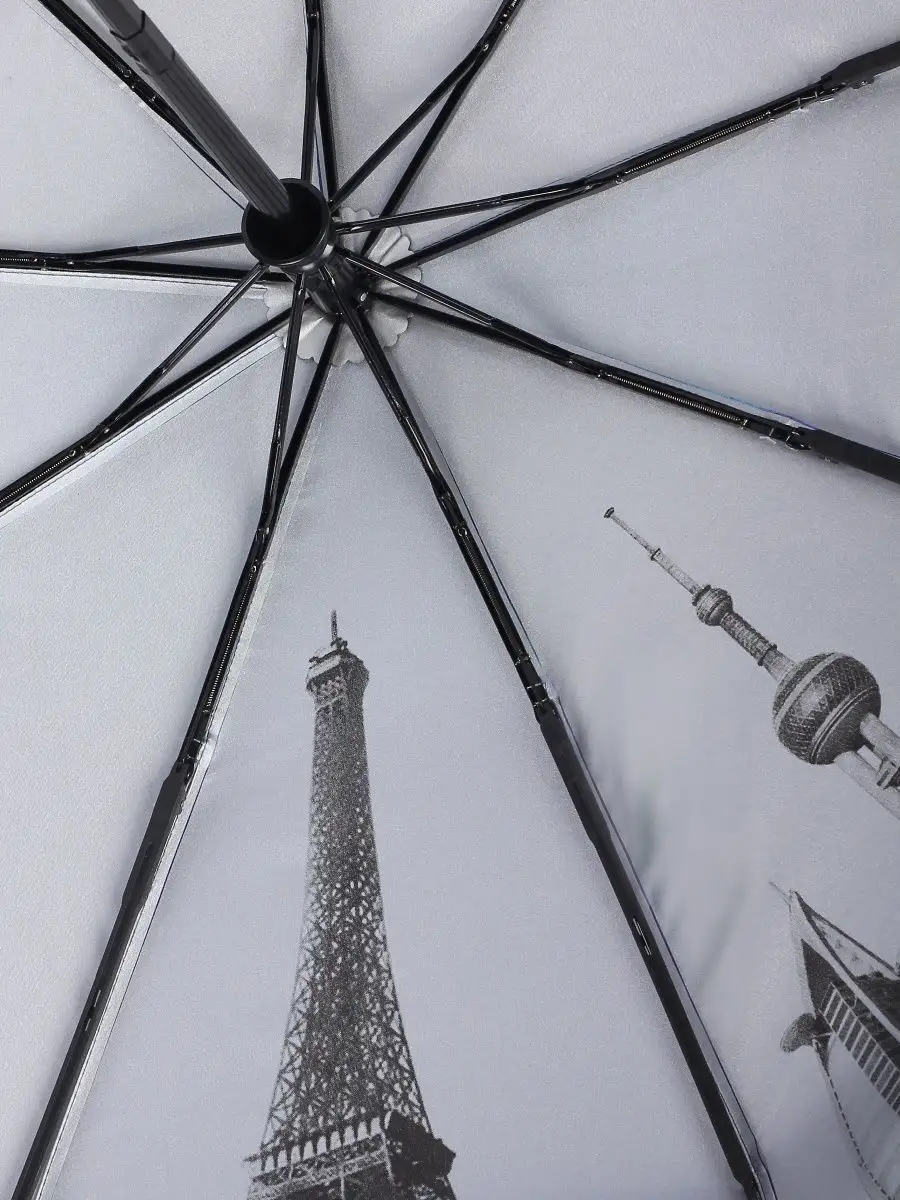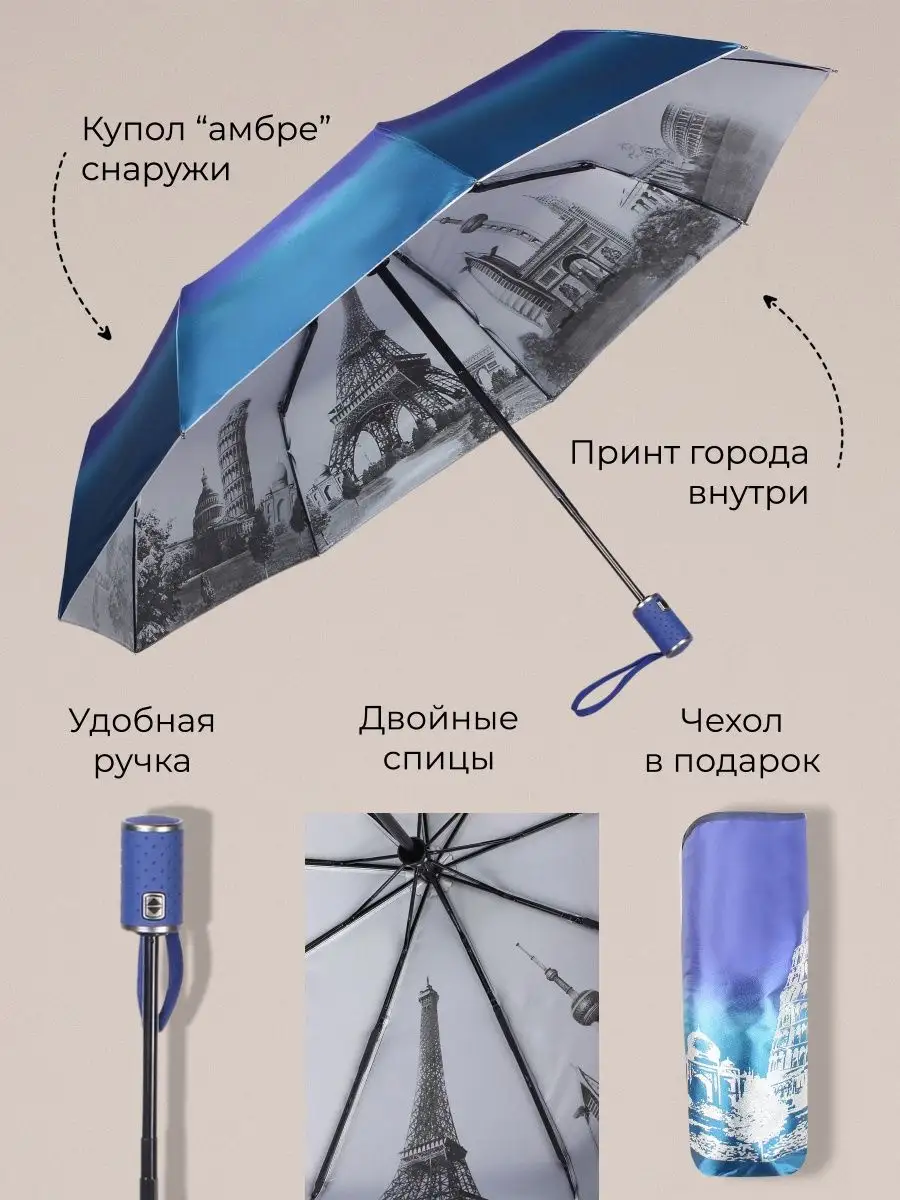 Описание: Новый качественный зонт автомат – привлекательный аксессуар, который улучшит Ваше настроение в любое время года и защитит от дождя или солнца. Крепкий, оснащён надёжным механизмом автомат, имеет прочный усиленный каркас, 9 спиц (сталь) и систему антишторм, против любого ветра. В наборе Вас порадует яркий стильный чехол, который идёт в комплекте. Снаружи классический амбре, однотонный, внутри расцветка привлекает внимание – города тренд 2023 года. Водонепроницаемый купол 104 см – семейный формат. Покрытие из полиэстера. В сложенном виде – 30 см. Пластмассовая ручка с мягким прорезиненным покрытием. Производитель Япония. Осень не повод, чтобы грустить, а подходящее время для фотосессии на улице, за городом, в парке подростку или для жены. Осенний зонт - недорогой подарок на день рождение коллегам, лучшему другу. Большинство девушек ищут именно этот необычный аксессуар, а также эта форма – многочисленный молодежный выбор подростков. Взрослые люди не останутся равнодушными. Купить такой зонтик можно им на годовщину отношений, в подарок папе, маме. В современной моде внимание уделяется абсолютно всем деталям гардероба. Каждый человек хоть раз в жизни сталкивался с проблемой выбора защитника от дождя. Отличный повод подарить - 23 февраля любимому парню, мужу, дедушке или брату, возможно просто без повода молодому человеку. Мужчины, как и женщины одинаково не безразличны к данному аксессуару. Каким он должен быть? Какой именно отлично впишется в образ и придаст изюминку его счастливому обладателю. Бесспорно, в любой ситуации выгодно будет выглядеть классика. Например, однотонные оттенки или в клетку (настоящий мужской выбор). Многие модницы среди селебрити предпочитают прозрачные модели для светских выходов как декоративные. Под уличный стиль casual, который сейчас весьма популярен среди молодежи, не установлены никакие границы. Поэтому с джинсами бойфренд и футболкой оверсайз отлично будет смотреться как универсальный черный, так и цветной с любым рисунком. Правильно выбрать модный аксессуар еще недостаточно. Людям с более активным образом жизни лучше выбрать складной небольшой, который помещается в рюкзак. А любителям классического стоит склониться к выбору трости, более строгий деловой вариант. В сочетании с клатчами, сапогами или туфлями такая модель будет выглядеть более выигрышно. Данный стиль свойственный для бизнес-леди. Поэтому отлично подойдёт подруге или сестре, бабушке на 8 марта. Рекомендации по уходу. Сушить следует в закрытом виде, не застегивать во избежание деформации ткани, а также можно и в открытом, если ткань достаточно плотная как в нашей модели. Если испачкался, уберите загрязнение небольшим количеством мыльного раствора, после промойте место пятна чистой водой. Стирать крайне не рекомендуется, как и использовать едкие химические жидкости (большинство зонтов имеют окрашенную ткань, которая может выцвести при использовании химии) - все эти действия могут повести к поломке, выходу из строя механизма. Утюг также под запретом. Если ходите разгладить - используйте отпариватель. Из необычных зонтов можете поискать у нас в магазине: обратного сложения «раскладушка». Помимо складных Вы можете найти полуавтомат, трости, большие и маленькие купала, с принтом городов, а также компактные автоматические для д