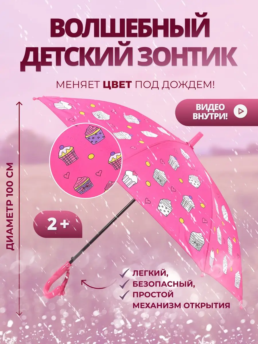 Описание: Зонт детский хамелеон Aquamarinе KIDS — базовый модный аксессуар для вашего ребёнка, который защитит вашего ребенка от дождя и мокрого снега. Дети будут в восторге от зонтика, меняющего цвет под воздействием воды. Зонтик-раскраска вызовет у вашего малыша вау-эффект! Яркие цвета и прикольные рисунки подарят деткам позитив даже в самые дождливые дни. Это прямое попадание в сердце любимого человека. Принты с машинами и тачками оценят мальчики. А тортики и милые пирожные в розовых тонах и в горошек — наше предложение для маленьких девочек. Дети школьного возраста делают выбор в пользу топовых дизайнов: человек — паук, Леди Баг, щенячий патруль, машины, Маша и медведь, единороги, игрушечные машинки, плюшевые игрушки (например, мишки). Приглушённые однотонные цвета по типу белого, бежевого — чаще подростковый выбор. Уверяем, с таким аксессуаром эти ребята без внимания не останутся в любой сезон. Надёжная конструкция зонта защитит ребенка от ветра. Высокое качество даст отпор влаге холодной дождливой весной или осенью, благодаря водоотталкивающему эффекту ткань не поддастся намоканию. Зонт укроет от солнца знойным летом — летний вариант использования зонта. Солнцезащитный эффект осуществляется благодаря плотной ткани и большому диаметру купола. Несмотря на то, что с одной стороны — зонт компактный, спрятаться под ним могут три человека. Это выбор школьников, ведь ни портфель, ни сумка не станут преградой для ношения нашего мини зонта. Благодаря тому, что он легкий (260 грамм, облегчённая модель), оптимальной длины (50 см) и комфортен в применении — дает возможность пользоваться детям с трёхлетнего возраста. А главное, детская ручка не устаёт. Мы за безопасность. Поэтому наш зонт выполнен из гипоаллергенных (нейлон) и прочных (металл) материалов. Наши зонты с большим куполом (зонт—трость) и прочными спицами. Открывается автоматически при нажатии кнопки (полуавтомат). Эти преимущества делают товар поистине мастхэвом и выбором первой линии. Свисток и чехол отсутствуют. Мамы, папы, бабушки и дедушки спокойно отпускают детей на уличные просторы с нашим товаром. Берите в подарок для своего любимого ребёнка. Например, на день рождения дочери сына внука внучки зонт складной отличный вариант. Зонтик детский складной это необходимый атрибут в гардеробе каждого ребенка. Приобретайте зонтики хамелеон Aquamarinе KIDS. Наша продукция — семейный выбор. Она «прозрачная» — вы всегда можете задать интересующие вопросы. Оставляйте, пожалуйста, отзывы о товаре. Нам важно ваше мнение!