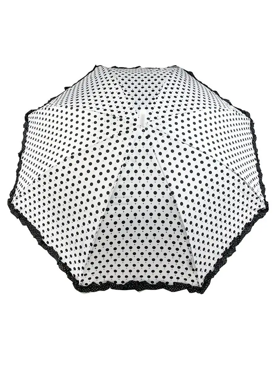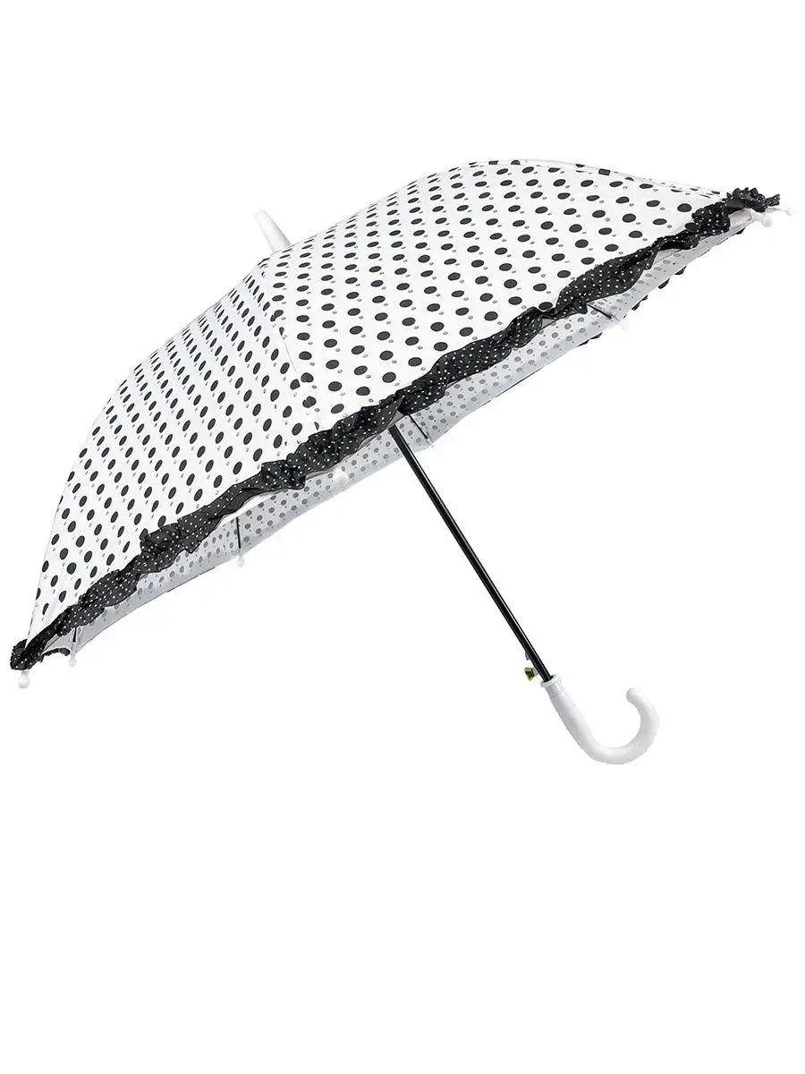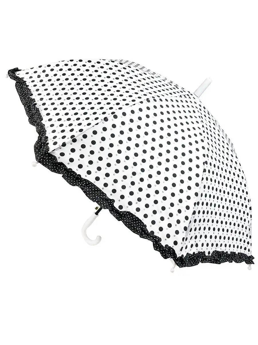 Описание: Зонт детский в горошек с рюшами. Диаметр купола 84 см. Длина зонта в сложении 68 см. Материал купола плотный эпонж. Принт черно-белый горох и серебристые блестки. Зонтик отличный подарок детям.