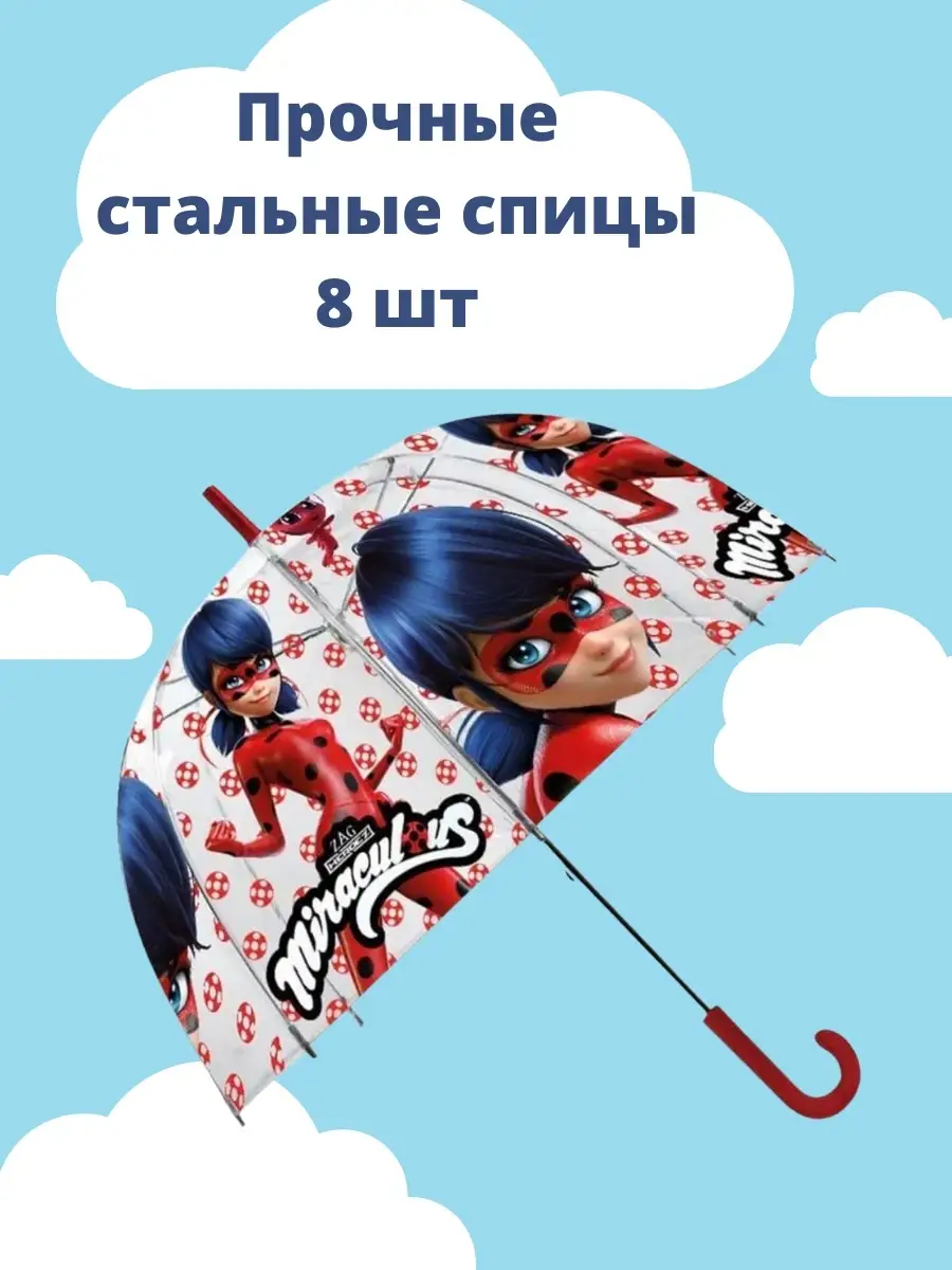 Зонт детский для девочки прозрачный купол Леди Баг