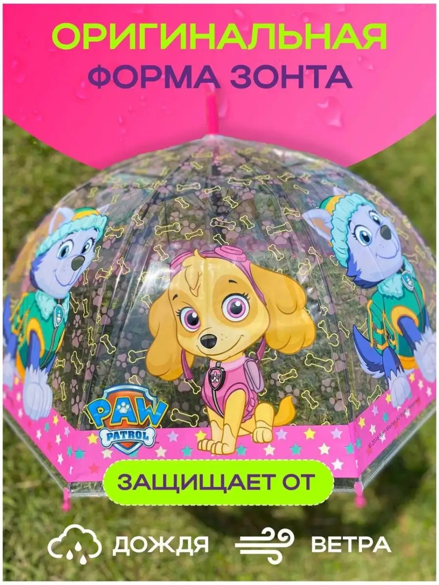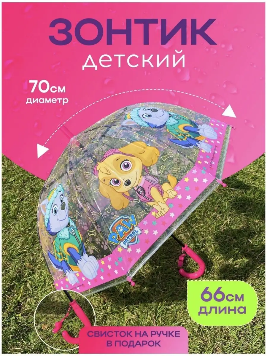 Зонт детский для девочки прозрачный купол Щенячий патруль
