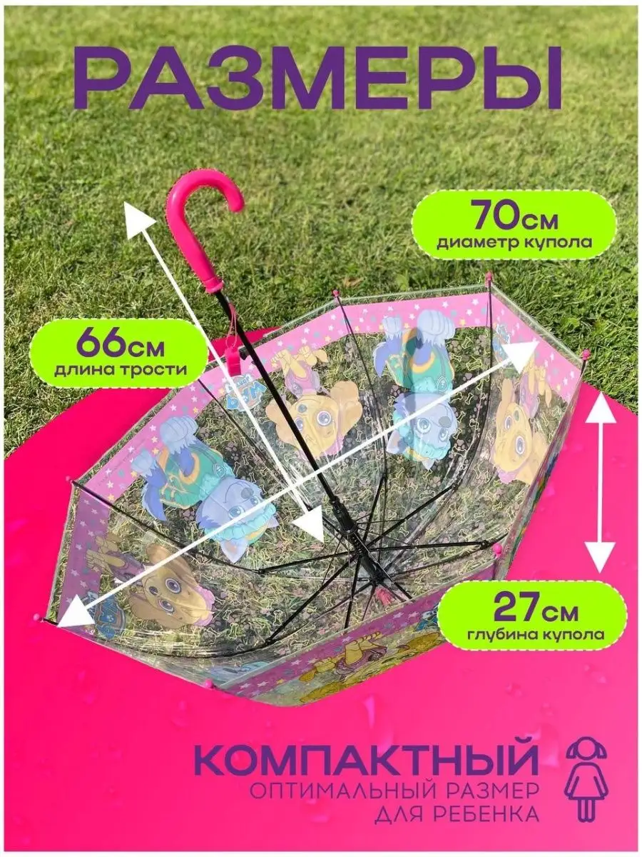 Доп. опции зонта антиветер; складной; зонт трость детский с прозрачным куполом
