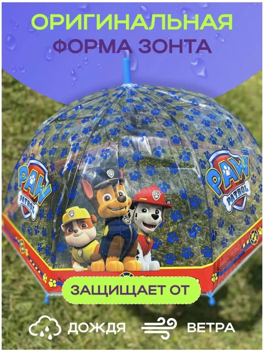 Зонт детский для мальчика прозрачный купол Щенячий патруль