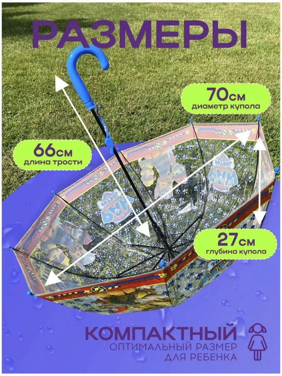 Описание: Яркий зонт с мультяшными персонажами надежно защитит ваше любимое чадо в непогоду и порадует дизайном. Ведь с любимыми героями намного веселее шагать по лужам! Зонт отличается простотой модели, прочностью спиц, ветроустойчивым куполом. Прозрачный дизайн- идеален для наилучшего обзора. Предложите вашему ребенку самостоятельно выбрать зонт с приглянувшимся принтом. Ищете идеальный подарок для детского дня рождения или просто желаете порадовать своего любимого малыша? Тогда обратите внимание на этот зонт детский трость для девочек и мальчиков! Этот складной зонт станет надежным защитником от холодного дождя и сильного ветра благодаря своей конструкции антиветер. Детский зонтик легко складывается , а свисток который идет в комплекте порадует вашего ребенка. Дизайн зонта выполнен с использованием ярких и прозрачных материалов, а также любимых мультяшных персонажей – Леди Баг Молния Маквин Холодное сердце Анна Эльза Щенячий Патруль Скай Эверест Маршал, Крепыш Гонщик и другие. Яркий красочный надежный зонт станет любимым аксессуаром вашего чада. Зонт детский трость для девочек и мальчиков подойдет как для маленьких детей, так и для подростков. Идеальный выбор для дня рождения, подарок будет не только полезным, но и стильным. Объедините любимые герои вашего ребенка в едином ярком дизайне и подарите ему новый, любимый зонтик! Диаметр купола 74 см для детей от 2 до 7 лет . Зонт детский Единорог единорожка радужный трость детский для девочки диаметр купола 86 см для детей от 5 лет и подростков. Разноцветный зонт с прозрачным куполом имеет систему полуавтомат, а 8 прочных спиц выдержат любой сильный дождь, принесет радость вашему ребенку. Уважаемые покупатели, обращаем ваше внимание, что в некоторых моделях зонтов свисток отсутствует!! Смотрите внимательно ФОТО.