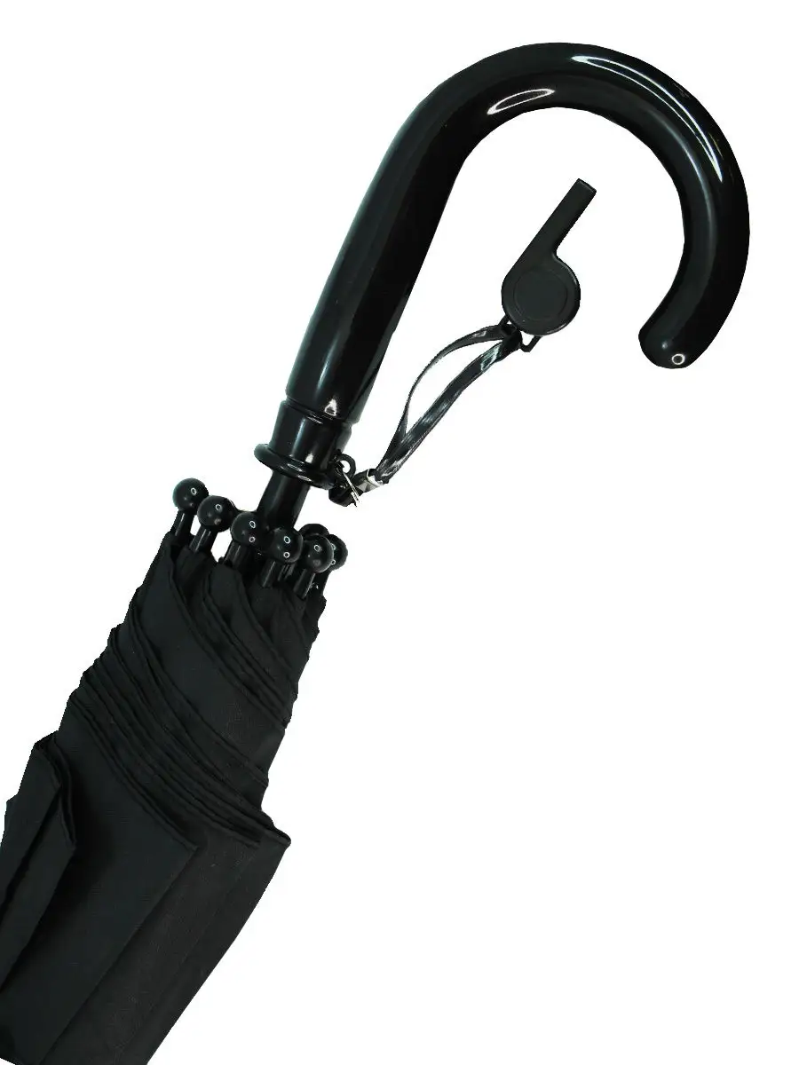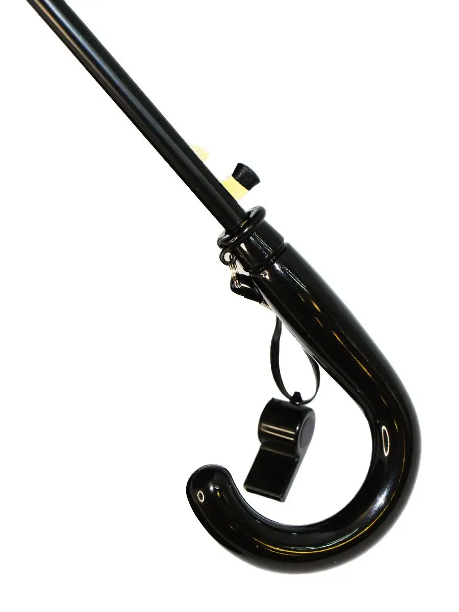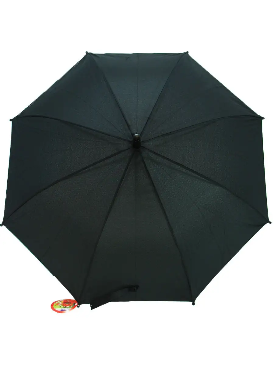 Описание: Детский зонтик-тросточка черного цвета защитит ребенка от непогоды. Зонтик не боится дождя и ветра благодаря прочному креплению купола к каркасу. Изогнутая ручка позволяет крепко держать зонт в руках,купол из 100% полиэстера "PONGE" С 8 нержавеющими спицами .Диаметр купола 88 см., длина в сложенном состоянии 68 см., вес 290 грамм. Однотонный детский зонт трость черного цвета – это идеальный подарок для ребенка. Он не только защитит от дождя, но и будет дарить хорошее настроение несмотря на непогоду, обращая на себя взгляды окружающих. Оригинальное дополнение в виде свистка скрасит впечатление от использования, поэтому полуавтоматический зонт детский станет любимым аксессуаром и точно не забудется дома. Длина основания в сложенном виде 68 см, а диаметр свода в открытом состоянии 88 см, ввиду этого он надежно укроет вашего ребенка от дождя и ветра. Материал верха - полиэстер "PONGE" с водоотталкивающей пропиткой, который не пропускает влагу и отличается особой стойкостью к внешним воздействиям. Зонтик для малышей весит всего 290 гр., что делает его комфортным даже для самых маленьких деток. Благодаря закругленной ручке, изготовленной из качественного и прочного гипоаллергенного ABS пластика, его удобно держать детям, и это снижает риск выпадения из рук при сильном ветре. Преимущество трости перед складными зонтами — это хорошее натяжение купола. Все элементы конструкции крепко зафиксированы между собой. Стальной каркас укреплен с помощью 8 спиц, каждая из которых оснащена защитным круглым наконечником для безопасного использования. Механизм работы – полуавтомат, открывается за счет кнопки, закрывается вручную. Эта система не позволит случайным нажатием ненамеренно закрыть купол в неподходящий момент, что часто происходит у тех, кто использует зонты автомат.
