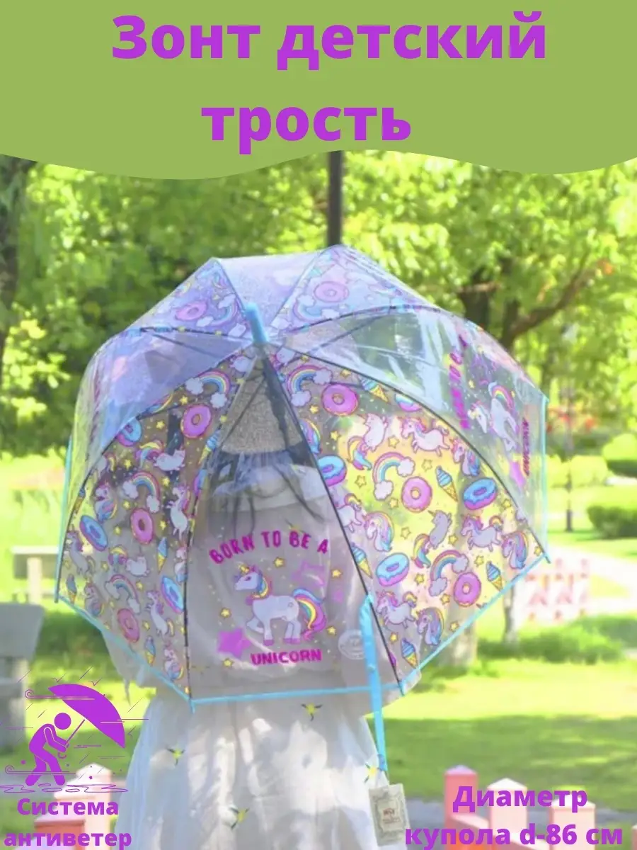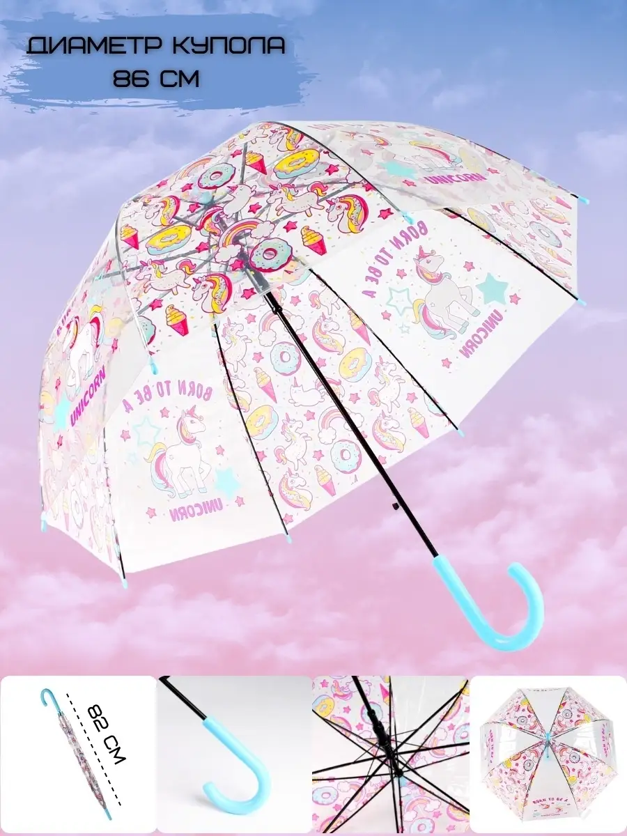 Описание: Детский зонт трость Единорог прочный и долговечный. Зонтик детский для девочки Волшебные Единороги с прозрачным куполом надежный прочный с большим куполом диаметром 86 см идеален для малышей и для подростка, его не будет выворачивать наизнанку при сильном ветре. Форма купола и отличное натяжение водоотталкивающей ткани надежно защитит ребенка в ненастье. Небольшой вес каркаса позволит нести зонтик самостоятельно. Яркая красочная расцветка Единорожки не оставит не замеченным вашего ребенка. Детские зонтики с изображением с героями любимого мультфильма принесут радость и восторг вашему ребенку. Зонт детский отличается простотой модели, прочностью спиц, ветроустойчивым куполом, система антиветер. Прозрачный дизайн идеален для наилучшего обзора .Разноцветный зонт с прозрачным куполом имеет систему полуавтомат, а 8 прочных спиц выдержат любой сильный дождь ,принесет радость вашему ребенку. Детский зонт идеальный подарок для детей, для дочки ,для внучки на любой праздник утренник в садике или в школу.