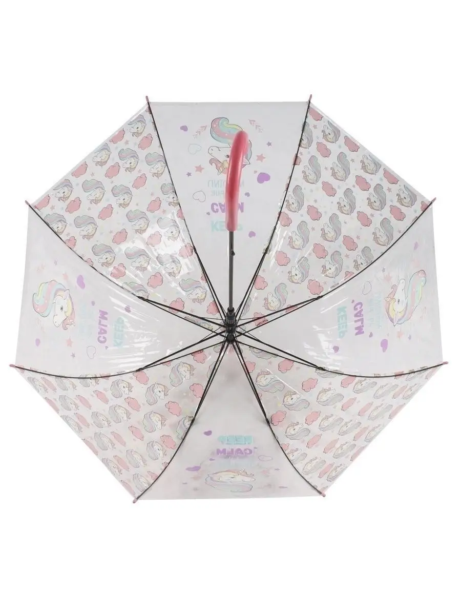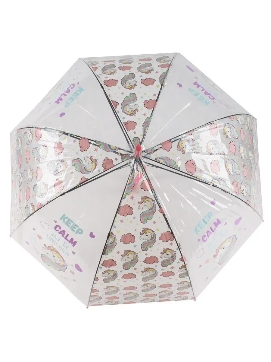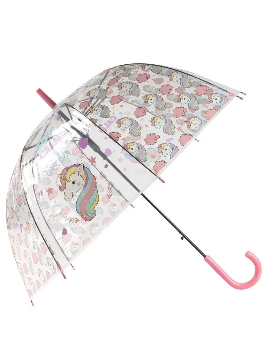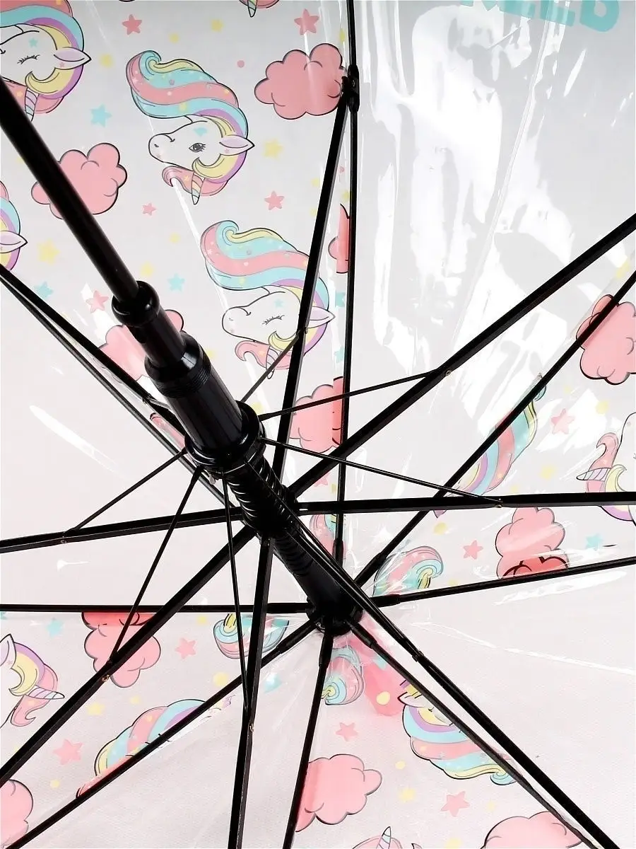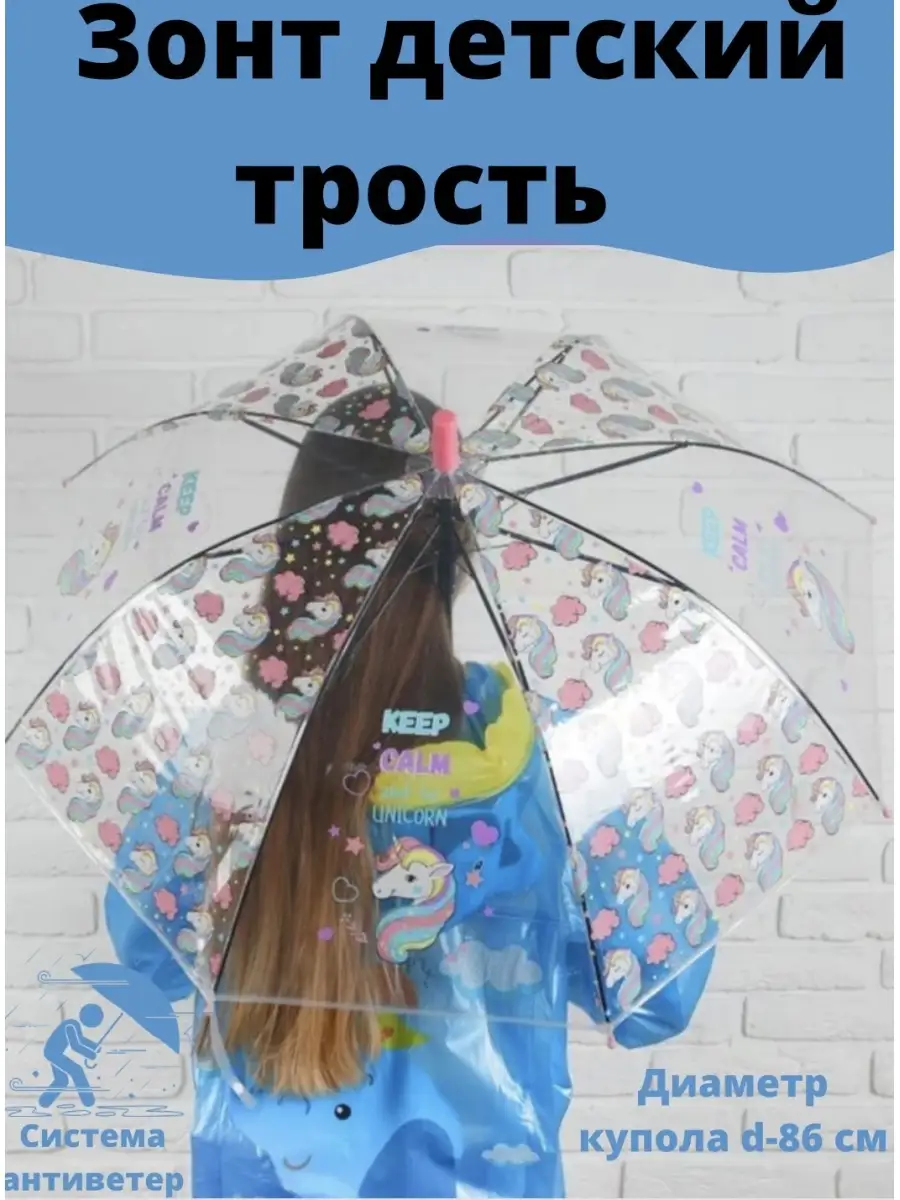 зонт детский трость прозрачный большой купол 84 см Единорог