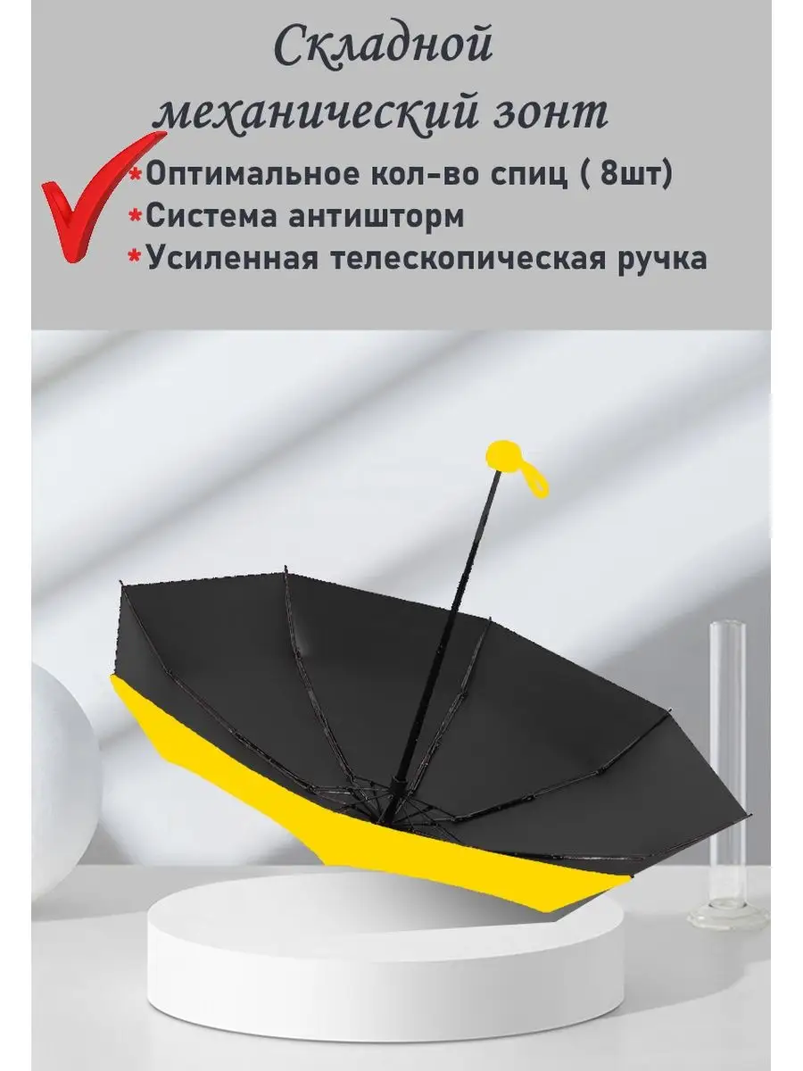 Описание: Классический мини зонт имеет надежный механический принцип открывания и закрывания зонта. Размер в сложенном виде 19 см, вес 310 гр, что позволяет положить зонт как в сумочку, так и в рюкзачок, бардачок Вашей или служебной машины или ящик офисной тумбочки. Зонт имеет 8 усиленных спиц с гибкими концами, что защищает его от сильных порывов ветра, так называемый принцип АНТИВЕТЕР / АНТИШТОРМ. Если все-таки произошел выгиб спиц наружу, при сильном порыве, достаточно просто резко встряхнуть зонт или руками опустить вывернутые спицы - и они вернуться на место. Зонт имеет купол размером 96 см, обтянутый полиэстером с водоотталкивающей пропиткой.Высококачественный водоотталкивающий материал, быстро сохнет, меньше мнется, прочный. Уникальные свойства материала делают зонт более долговечными. В купе с механическим открыванием зонта, он практически вечен). Этот зонт — это отличный подарок жене, мужу или ребенку на Новый Год, Рождество, День рождение, просто практичный подарок.