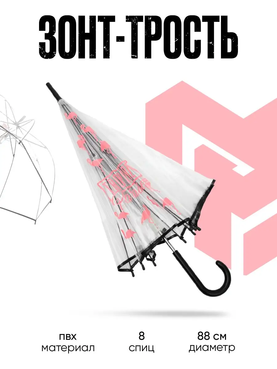 Доп. опции зонта водоотталкивающий; петля на ручке; прозрачный
