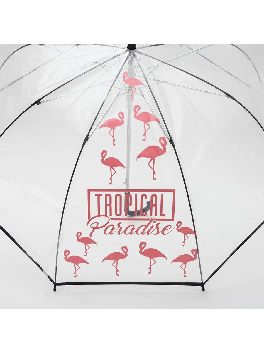 Описание: Зонт-купол "Tropical Paradise", 8 спиц. Прозрачный зонт-купол с металлическими спицами и пластиковой ручкой. Полуавтоматический механизм. Преимущество прозрачного зонта в том, что он не загораживает обзор, при этом надёжно защищая от дождя. Диаметр - 88 см.