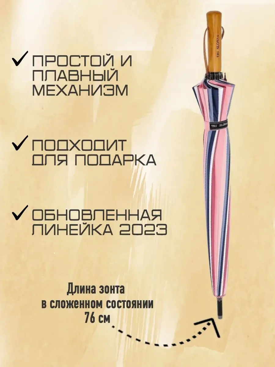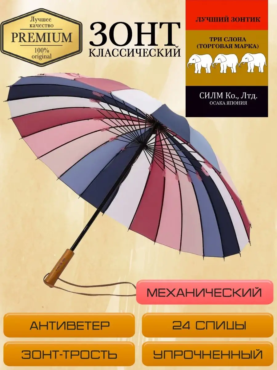 Описание: “Три слона” - один из крупнейших японских брендов зонтов, качество которых проверено столетиями. Мы являемся одними из немногих официальных поставщиков продукции 3 слона, продающих оригинал, а не копии для на наших любимых клиентов. Никогда не знаешь, когда пойдет дождь, но с нашими зонтами вы всегда будете готовы к любой погоде! У нас в ассортименте есть все виды зонтов: механические, полуавтоматические, автоматические и полный автомат, складные и трости, компактные и большие семейные. Для настоящих модниц и модников мы предлагаем женские и мужские зонты разных цветов и форм: от мини до трости, с антиветером и усиленными спицами, от классических черных до разноцветной трости с большим куполом. Данная модель зонт-трости представлена в разноцветном варианте (розовый, коралловый, белый, темно-синий, серо-синий) с ручкой из натурального дерева. Также на ручке есть кожаный ремешок, который позволит его хранит удобно в любом месте. Зонт механический трость подходит как для женщин и мужчин, так и для подростков девочек и мальчиков. Особенность заключается в том, что этот зонтик, включает в себя 24 спицы и систему антиветер. Такой зонт механический будет служить вам долго и верно в любую непогоду не один сезон! Благодаря куполу из премиального эпонжа он быстро сохнет, не мнется, сохраняет идеальный вид, дополняя ваш образ. Зонт три слона - 100% тренд 2023 года, который будет не стыдно приобрести для себя или в подарок близким людям: на день рождения, без повода, для мамы и для папы, для брата или сестры, для друзей и даже для бабушек и дедушек. Выбрать наш зонт - значит приобрести не только защиту от дождя, но и стильный, качественный аксессуар, который подчеркнет ваш индивидуальный стиль. Приятных покупок!