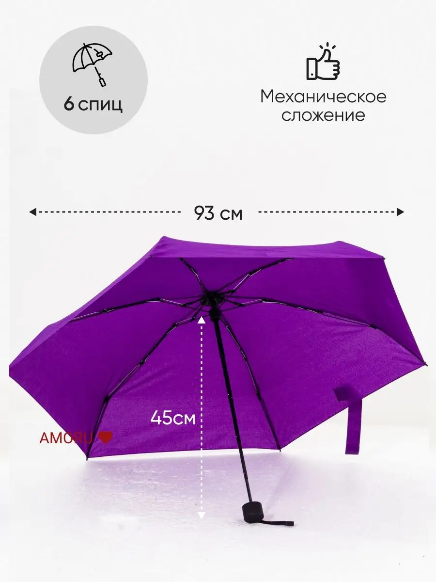 Описание: Классический однотонный мини зонт для женщин и мужчин, унисекс, детский для девочки и мальчика. Механический складной в три сложения. Легкий и компактный размером с ладонь взрослого человека 18 см в сложенном виде, вес около 200 гр. 6 прочных металлических спиц надежно удерживают купол диаметром 93 см. Нескользящая ручка с петелькой для кисти и подвешивания зонта. Чехол выполнен в тон. Спасет от дождя весной и осенью, летом от солнца и мокрого снега зимой. Маленький и не займет много места в дамской сумочке или рюкзаке ребенка, в бардачке машины и даже в кармане верхней одежды. Легко сочетать под цвет вашего гардероба. Насыщенные и сочные цвета для женщин и девушек, подростков. Строгие сдержанные для мужчин и парней. Зонт рассчитан на то, чтобы всегда быть с Вами и оказаться под рукой при внезапно начавшемся дожде. Мини зонтик облегчен, чтобы не отягощать своим весом и не предназначен для шквалистых ветров, штормовой погоды. Раскрывается и складывается вручную, предотвращая риск поломок, связанных с механизмом автоматического открытия. Незаменимый аксессуар станет отличным и универсальным подарком на любой праздник для любимой мамы и подруге, бабушке, однокласснику, презентом без повода. Проявите знак внимания учителю или коллеге, другу. Купите для себя и яркий зонтик поднимет настроение в любую непогоду!