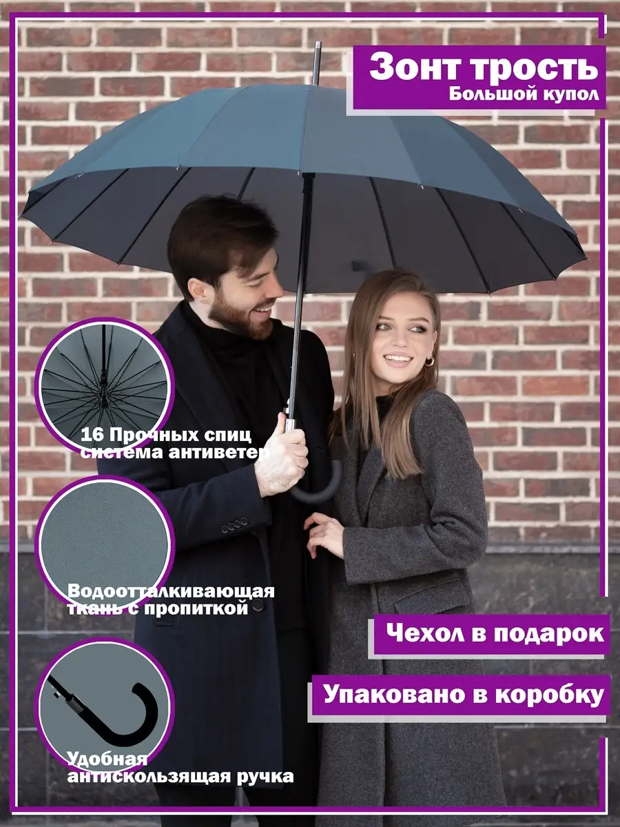 Зонт мужской семейный трость большой