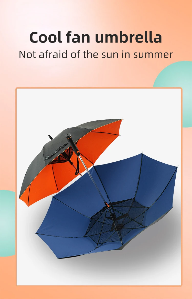 Зонт с вентилятором и длинной ручкой, креативный зонт для игры в гольф, ветрозащитный усиленный Зонт с защитой от солнца и дождя и УФ-лучей