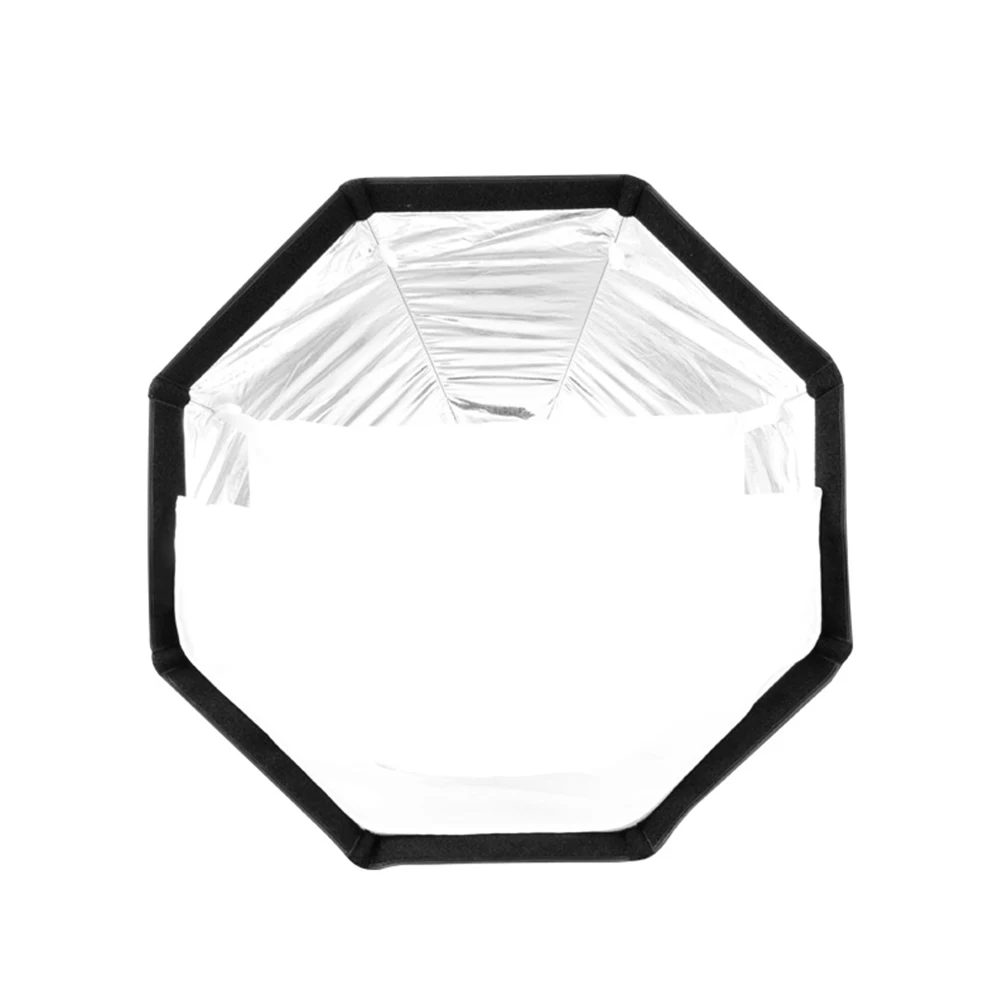 1. Внутри с отражающим серебром и поставляется с передним полупрозрачным диффузором, отлично подходит для speedlite, monolight, strobe или slave.