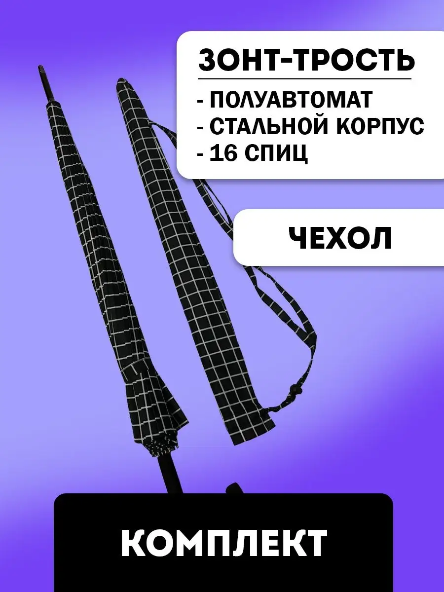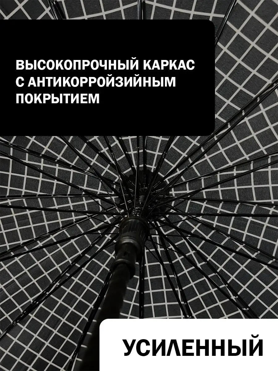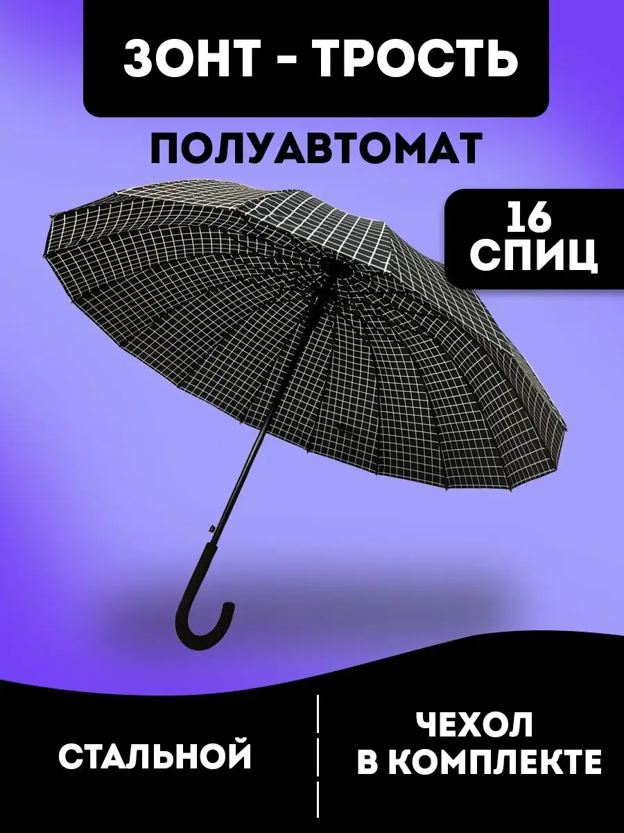 Описание: Зонт трость черный большой, Премиум, усиленный. Большой семейный чёрный зонт-трость полуавтомат в клетку. Прочный усиленный каркас. 16 спиц с системой Антиветер (Антишторм). дают вам полное спокойствие в любую непогоду от дождя с любыми порывами ветра. Солидный и красивый зонт-трость придает уверенность и брутальность для мужчин, элегантность и легкость для девушек. Зонт унисекс идет в комплекте с чехлом для более удобной переноски. Удобная ручка soft-touch позволяет получать удовольствие при тактильном контакте. Летний зонтик оснащен водоотталкивающей тканью, не давая вам промокнуть и спокойно заходить в помещения без страха намочить все вокруг. Большой диаметр купола 100 см помогает помещаться под ним нескольким людям. Зонт-трость - это идеальный подарок для любимого мужа, жены, отца, мамы, брата, дедушки и коллеги. Семейный зонт - это универсальный подарок. Стильный зонт создает уверенный, мужественный вид для каждого мужчины, а также мальчика подростка школьника. Каждый зонт отражает оригинальность, подчеркивает ваш статус. Порадуйте себя и своих близких зонтом для идеального стиля, даже в непогоду!