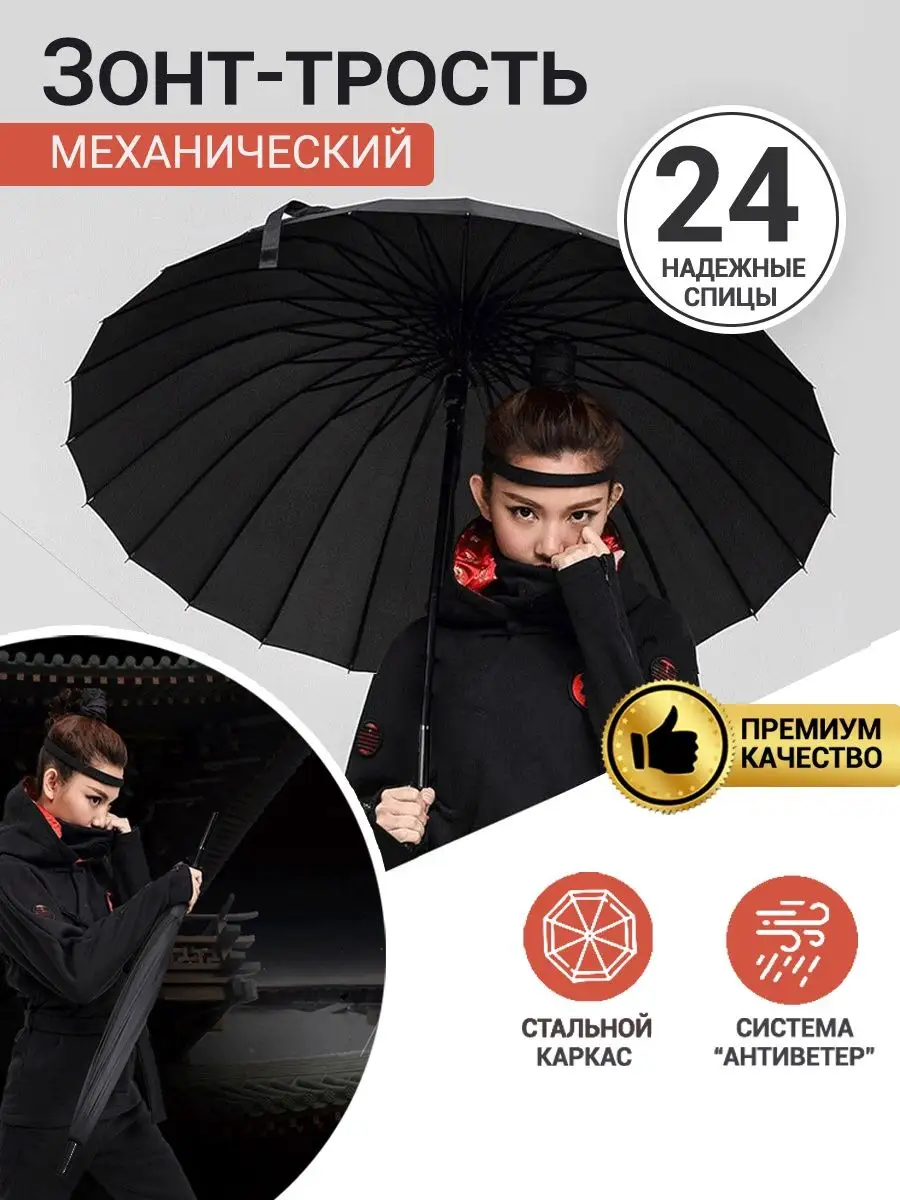 зонт трость черный японский