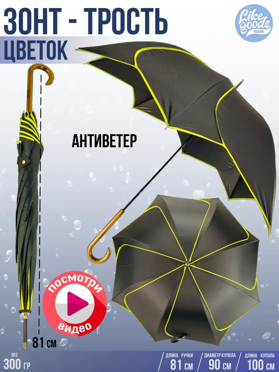 Описание: Like Goods - 100% российский бренд. Большой выбор недорогих и полезных товаров для дома. Производству Зонтов более 10 лет, применяются только современные технологии и инновационные материалы. Зонт-трость - это не только защита от дождя, но и стильный аксессуар. Уникальность - его необычный дизайн. При весе всего в 300 грамм, Диаметр купола составляет 90 см, а высота трости 82 см. Усиленный каркас зонта состоит из комплекса пружин и звеньев спиц, изготовлен из гибкого и упругого углепластика. Пружины защищают зонт от поломок при выворачивании, Анти-Ветер. Материал купола эпонж - вода превращается в капельки и скатывается, а сам зонт остается сухим Зонт механический, новая бескнопочная технология помогает его с легкостью открывать и закрывать. С-образная ручка, позволяет повесить его на запястье, Свободные Руки. Вы можете выбрать: Зонт Трость или Складной, Автомат или Механический Женский или Мужской и даже Детский набрав, в поиске: Like Goods Зонт