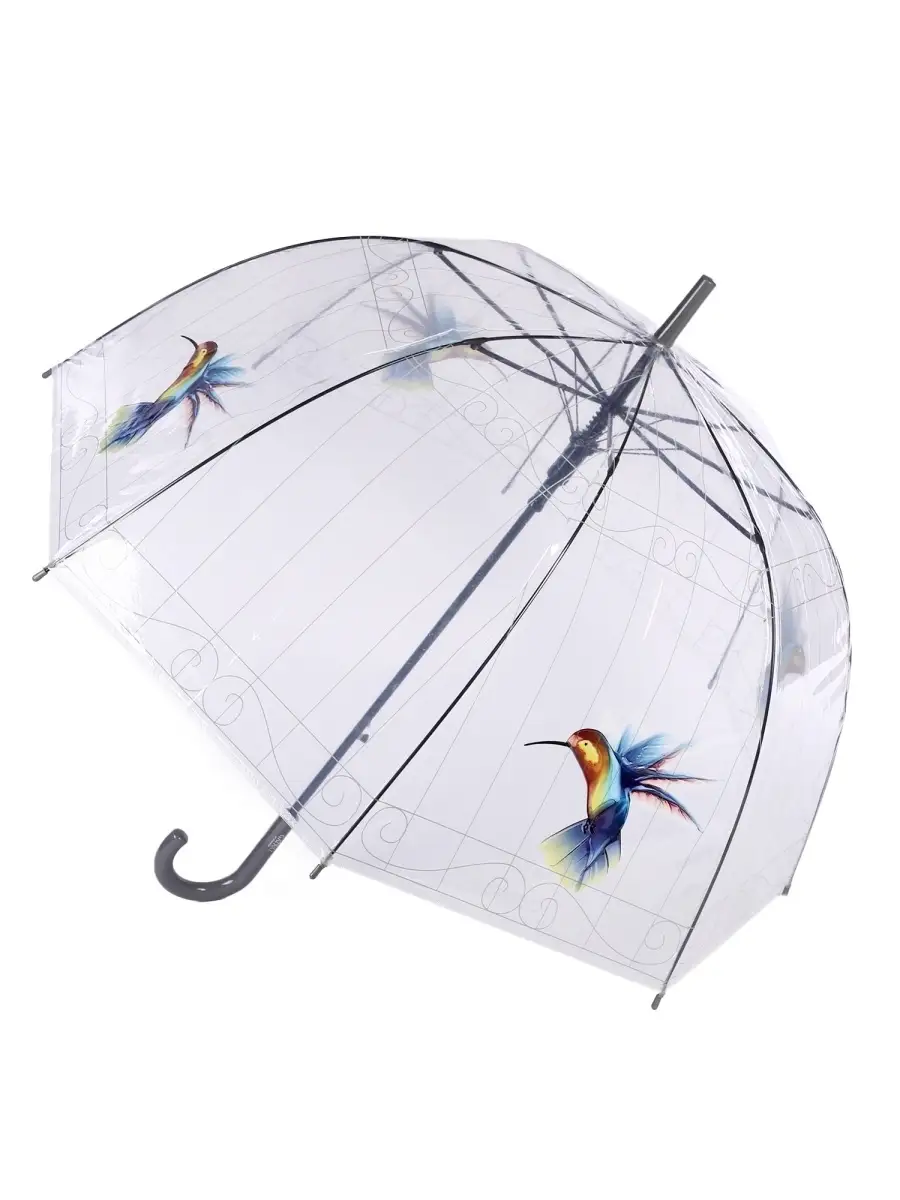 Описание: Зонт-трость купол прозрачный женский "Птичка" - настоящий хит этого сезона! Оригинальная конструкция "птичья клетка" эффективно защищает от дождя, при этом прозрачный купол зонтика не затеняет лицо и обеспечивает свободный обзор. Зонт ветроустойчивый, полуавтомат, ручка крюк изящная и удобная. Зонт крепкий имеет стальной стержень, 8 спиц. Материал купола большого зонта - прозрачный высококачественный полихлорвинил, диаметр купола - 88 см. Длина зонта в сложенном виде - 85 см, вес 380 гр. Зонт имеет необычный рисунок принт - очаровательные птички колибри. Благодаря многообразию оттенков рисунка зонт подойдёт к одежде любого цвета и поднимет ваше настроение в дождливую погоду! Зонт с прозрачным куполом - это подарок для любимой, на 8 марта, зонтик на день рождения, для мамы, жены, сестры, девушки на любой праздник. Зонт классический с большим куполом подойдет для любого современного образа: его можно использовать как зонт для прогулок, похода на работу, зонт для фотосессии, зонт в подарок.