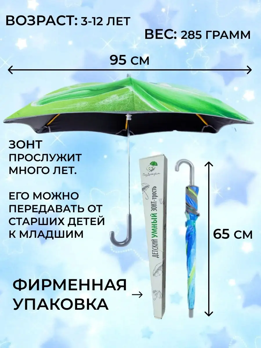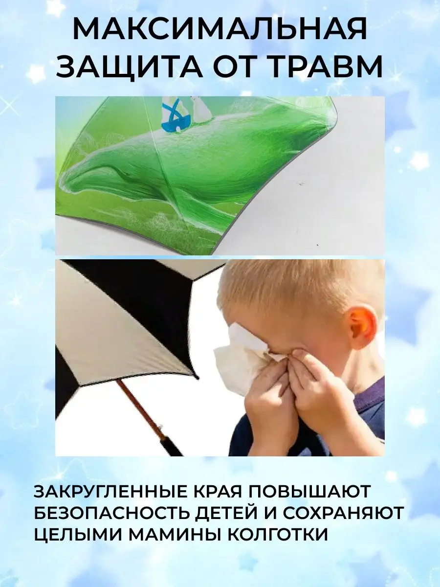 Описание: Безопасный детский зонт трость высокого качества! Это зонт, который Вы покупаете для своего ребенка на много лет, а потом передаёте младшим детям или племянникам. Скругленные углы без торчащих спиц позволяют быть уверенным, что ребенок будет в безопасности, не ткнет другого ребенка в голову или глаз и не зацепит мамины колготки. Каждая спица спрятана в свой защитный кармашек, пружина механизма находится в пластиковой капсуле. Светоотражающая лента на зонте обеспечит безопасность Вашему ребенку в темное время суток. Водитель всегда сможет увидеть ребенка на дороге или пешеходном переходе. Зонт механический, складывается без усилий.Усиленные, гнущиеся, прорезиненные спицы с безопасными наконечниками и дополнительными соединителями обеспечат защиту от случайной поломки спиц при сильном ветре, падении, изгибах или ударах. Их практически невозможно сломать. Это защитит Вашего ребенка от травм при случайном падении или играх с зонтом.Яркие расцветки с милыми и добрыми мульт персонажами понравятся детям. Детский зонтик предназначен для тех детей, которые не любят дождевики. Зонт - стильный детский аксессуар, его можно подобрать под цвет одежды.Зонт трость очень легкий, имеет 6 пластиковых спиц. Материал купола винил.Доставляется в защитной коробке. Детский зонт необходим ребенку в любое время года, и зимой и летом.Подходит в качестве подарка для мальчика и для девочки 3-10 лет на день рождения или любой другой праздник.