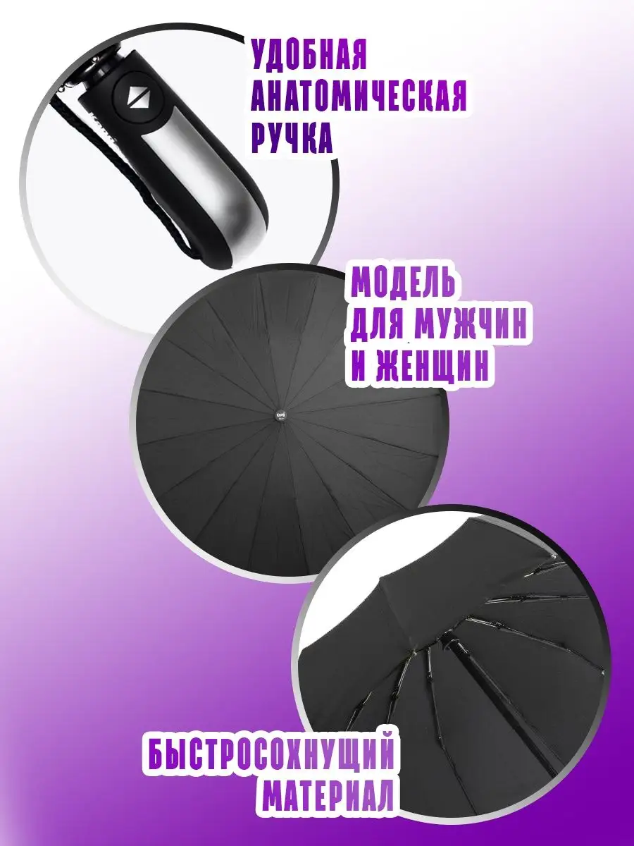 Описание: ВНИМАНИЕ! Зонт - автоматический! Во избежание заклинивания механизма и для сохранения зонта в работоспособном состоянии, зонт следует складывать ТОЛЬКО после сворачивания купола повторным нажатием на кнопку открытия/закрытия. Встречайте сезон с модным зонтом! поставляется в индивидуальной подарочной коробке, Стильный и практичный! Большой автоматический зонт имеет лаконичный дизайн и оптимальный размер. Компактный в сложенном виде он имеет большой диаметр купола 103 см. Ткань купола мягкая на ощупь, изготавливается из нитей полиэстера с шероховатой поверхностью, на которой вода превращается в капельки и скатывается, а зонт остается сухим. Усиленная конструкция зонта с использованием 16 спиц выделяется среди прочих зонтов. Зонт с карбоновыми спицами снабжен системой "Антиветер", что исключает возможность поломки зонта даже при сильнейшем ветре. Представленные модели изготовлены из высококачественных материалов и будут служить Вам долго и без нареканий. Ключевые слова: зонт мужской, женский, в подарок, мужчине, женщине, компактный зонт, автоматический, автомат, большой купол, зонтик, зонт, зонт женский, мини, подарок