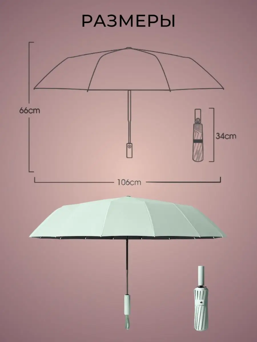 Описание: Доброго времени суток, мы рады вам предложить женские зонты от компании Вселена Люкс! Женские зонты стали незаменимым аксессуаром в гардеробе современной женщины. Если вы ищете идеальный складной, автоматический зонтик, который сочетает в себе функциональность, стиль и качество, то вам точно стоит обратить внимание на нашу коллекцию красивых зонтов. Наш интернет-магазин предлагает широкий ассортимент современных женских зонтов с системой антиветер 16 спиц из стекловолокна и водонепроницаемое покрытие из полиэстера, которое сохраняет его в превосходном состоянии на протяжении многих лет использования. Механизм зонта оснащен металлическим каркасом с антикоррозионным покрытием, усиленными, двойными спицами, что обеспечивает большую надежность зонта и его устойчивость к сильным порывам ветра. Так же наши зонты используются как большие зонты от солнца, которые помогут создать приятную, прохладную тень в знойный, солнечный день. Наша главная цель - помочь вам найти зонт женский, который отлично подойдет под ваши требования и будет удовлетворять всем вашим потребностям. Наши зонты хорошо подойдут для подарка маме, бабушке, любимой девушке, жене на любой праздник. А так же он может стать и семейным зонтом, и укроет вас всех от непогоды. Мы предлагаем женские зонты с функцией автоматического открытия и закрытия, что делает использование зонта максимально удобным и быстрым. Вы сможете с легкостью раскрыть зонтик одной рукой, что будет особенно полезно в тех ситуациях, когда на улице начинается дождь или погода внезапно меняется. Наши зонты также обладают антиветровым свойством благодаря своей конструкции с армированными спицами. Это означает, что ваш зонт надежно защищает вас от порывов ветра, не опасаясь сломаться или вывернуть большой купол. Даже в самые пасмурные и ветреные дни вы можете быть уверены в надежности и функциональности наших зонтов. Вы найдете у нас классические и элегантные зонты, которые подойдут для любого официального мероприятия или деловой встречи. Независимо от ваших предпочтений, мы уверены, что вы обязательно выберете зонт, который подчеркнет вашу индивидуальность и стиль. Кроме того, наши женские зонты имеют продуманную конструкцию, что делает их удобными в использовании. Эргономичная ручка позволяет легко и удобно держать зонт в руке, не утомляясь даже при длительном использовании. Не упустите возможность приобрести качественный зонт автомат женский, который станет надежной защитой от дождя и ветра. Закажите зонт складной у нас прямо сейчас и насладитесь комфортом и стилем в любую погоду. Мы предлагаем качественные, проверенные зонты, чтобы удовлетворить все ваши потребности и предпочтения. Вариации цвета наших автоматических, складных зонтов, позволят вам подобрать идеальный зонт, как анитветер так и солнцезащитный, который отражает ваш стиль и индивидуальность. Покупайте женские зонты у нас и обретите надежного спутника в любую погоду. Наша компания гарантирует высокое качество продукции, доступные цены и быструю доставку. Спешите обновить свой гардероб и приобрести стильный и комфортный женский зонт уже сегодня! Чехол в подарок для женского зонтика. С заботой и любовью, компания Вселена Люкс!