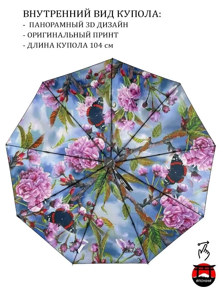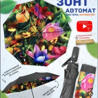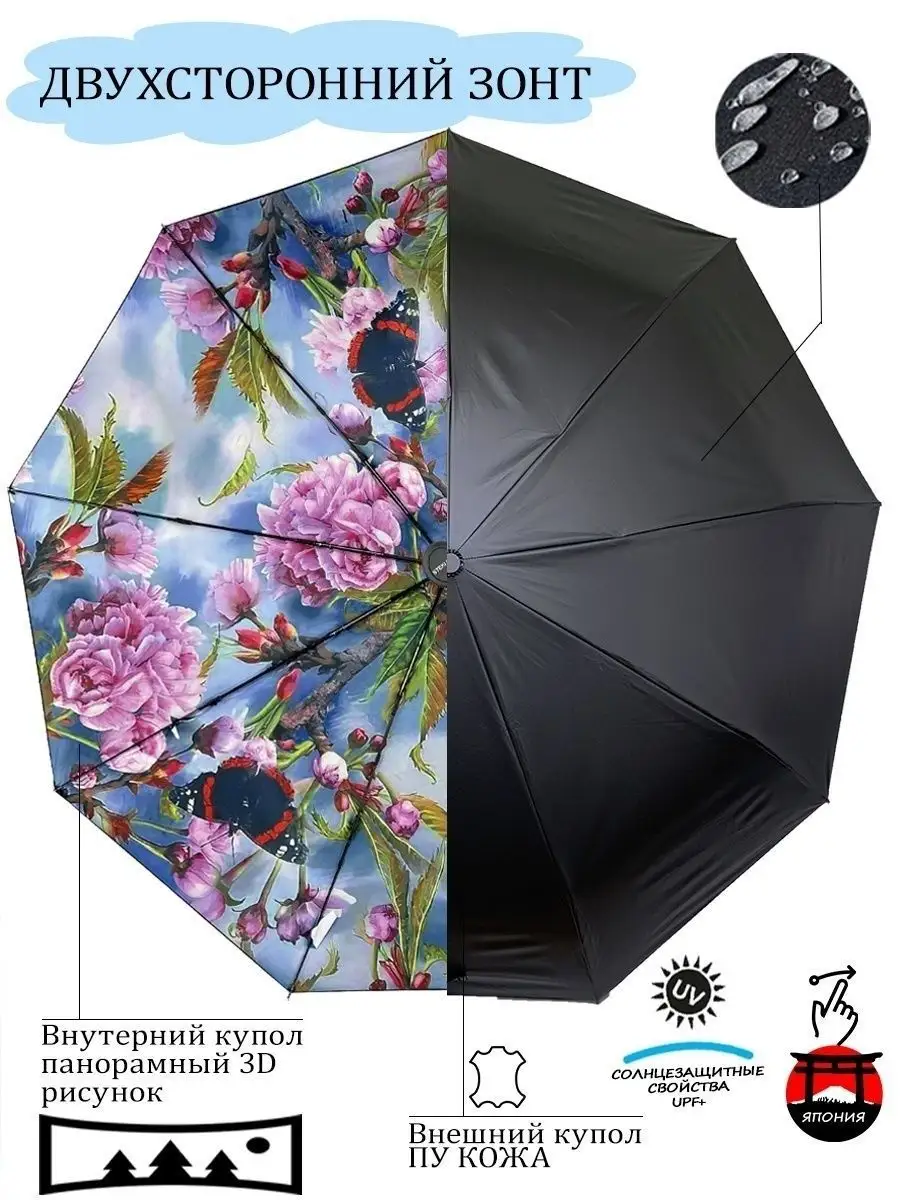 Зонт женский автомат антиветер двухсторонний 3D принт цветы