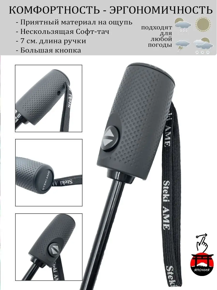 Материал ручки зонта Пластик с покрытием SoftTouch; прямая ручка