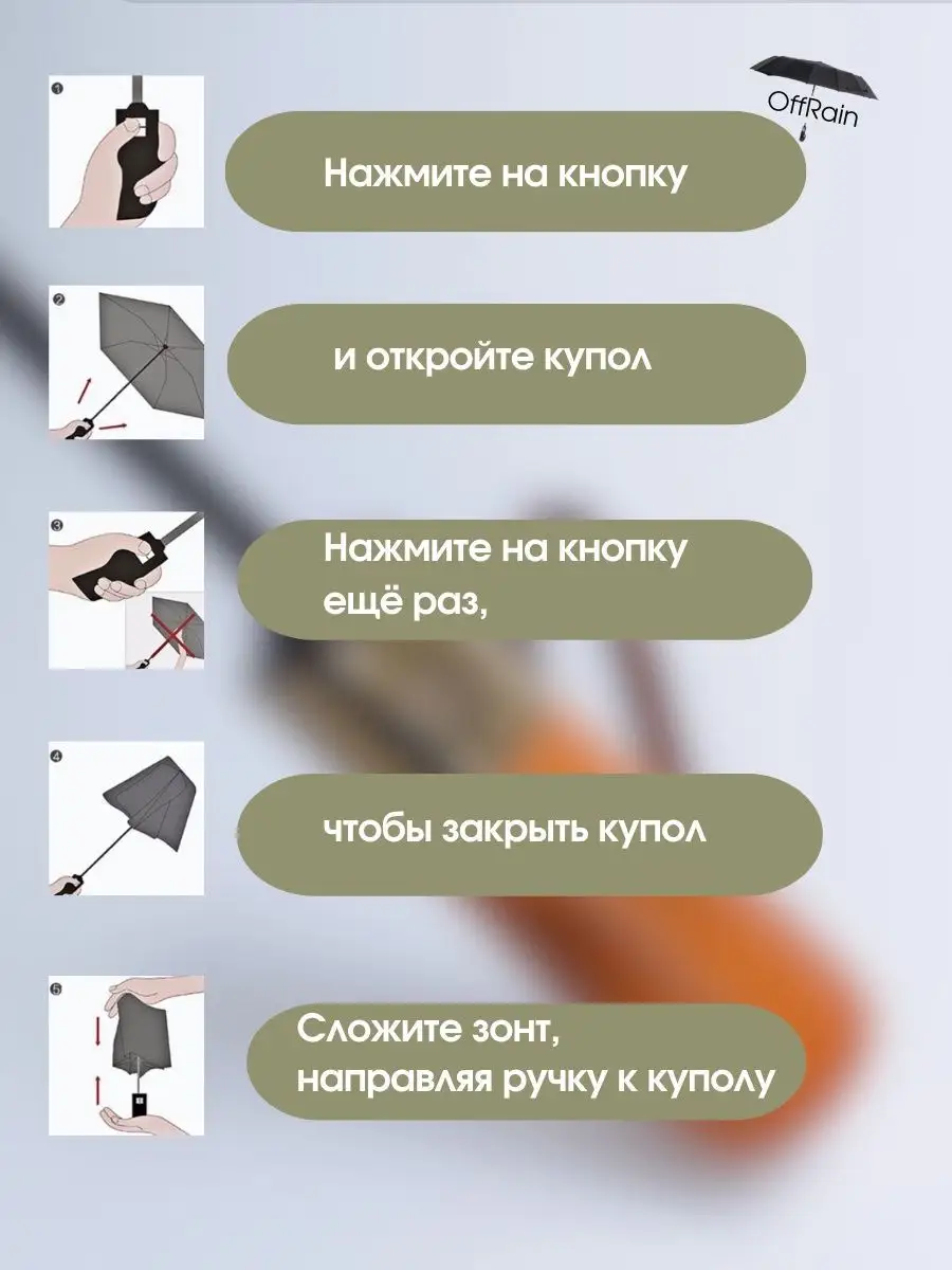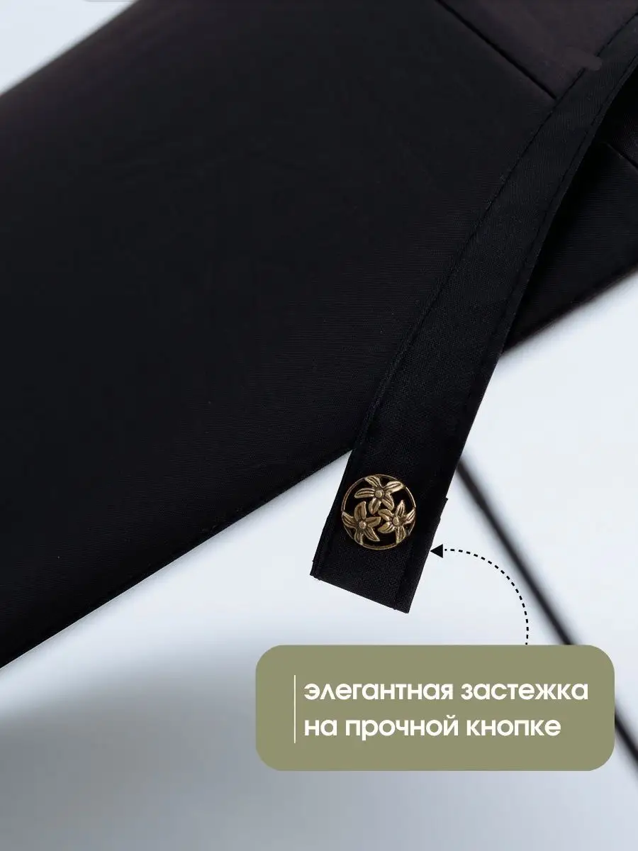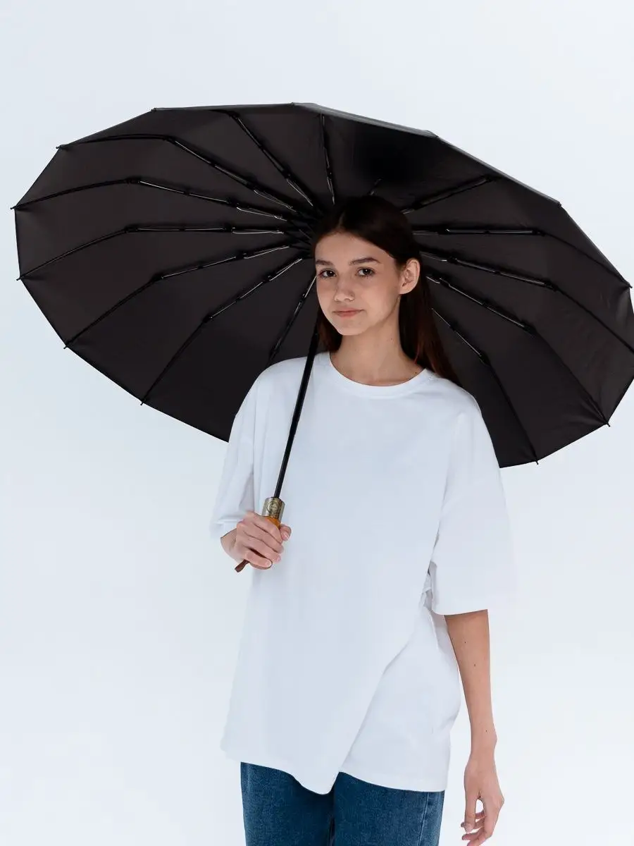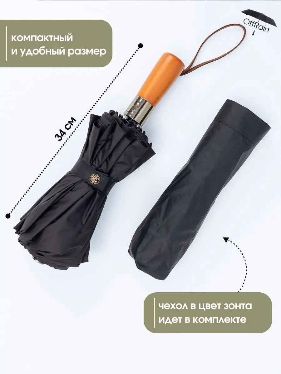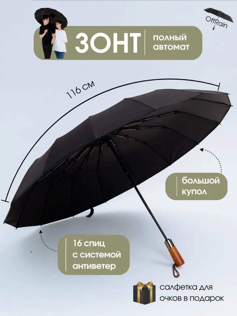 Описание: Зонт женский автомат 16 спиц с функцией антиветер (антишторм) укроет Вас от дождя весной, летом и осенью, а зимой от снега. Зонтик женский идеально смотрится у девушек от подростков до благородного пенсионного возраста. Большой купол (116 см по внешней стороне купола, диаметр 104 сантиметра) подойдет для двоих. Благодаря прочным спицам зонт повседневный не сломается даже при плохих погодных условиях. Мощный механизм защитит от сильного дождя и ветра. Чехол в цвет зонта идет в комплекте. Зонт классический подходит для защиты от солнца. Черный зонт — это всегда стильно и модно, солидно и благородно, лаконичный дизайн и оптимальный размер. Данный компактный аксессуар (в сложенном виде всего 34 сантиметра) легко поместится в женскую сумку. Благодаря весу изделия всего 600 грамм Вам не будет тяжело его носить при себе постоянно. Зонт складной китайский подходит для ежедневного использования: по пути на работу, когда ведете ребёнка в сад и школу, можно взять с собой в путешествие, на прогулку, в поход на природу или на пикник. Подходит для городских и загородных условий. Ткань купола сделана из высококачественного материала, который не впитывает капли дождя, благодаря чему зонт большой прослужит долго. Деревянная ручка комфортно и удобно располагается в женской руке любого размера. Получить в подарок этот зонтик усиленный будут рады Ваши любимые мама и бабушка, сестра и подруга, коллега. Будем рады видеть Вас нашими покупателями, с уважением команда OffRain. Наши клиенты самые лучшие!
