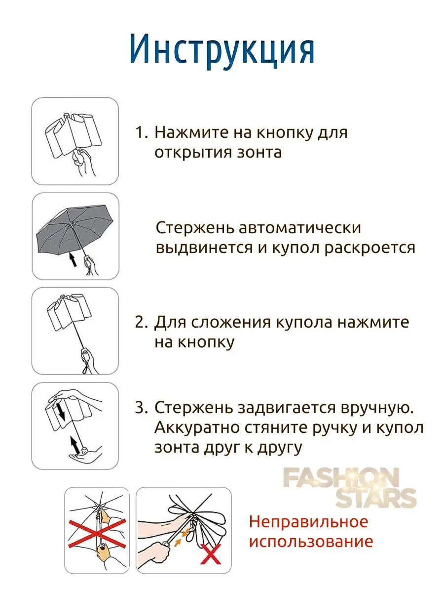Описание: Каждый зонт внимательно проверяется перед отправкой. Гарантийный талон внутри! Зонты радуга бабочки и зонт роза усиленной конструкции марки Diniya. Сделаны из высококачественного полиэстера с водоотталкивающей пропиткой. Материал купола эпонж - это хлопчатобумажная или шелковая ткань с шероховатой поверхностью, на которой вода превращается в капельки и скатывается, а сам зонт остается сухим. Механизм: зонт женский автомат, открывается и закрывается кнопкой. Конструкция: зонт складной легкий маленький с комплексом из девяти высокопрочных стальных спиц с антикоррозийным покрытием и гибкого и упругого пластика фибергласс для дополнительной надежности. Большой яркий купол - размером 100 см с системой "антиветер", имеет три сложения, размер в сложенном виде - 34 см. Зонт поставляется в непромокаемом чехле, в котором удобно переносить и хранить. Цвет ручки и чехла может быть разным - одним из цветов купола. Это отличный подарок на день рождения, новый год, 8 марта - подарок сестре и подруге, маме и бабушке, девочке и женщине всех возрастов.