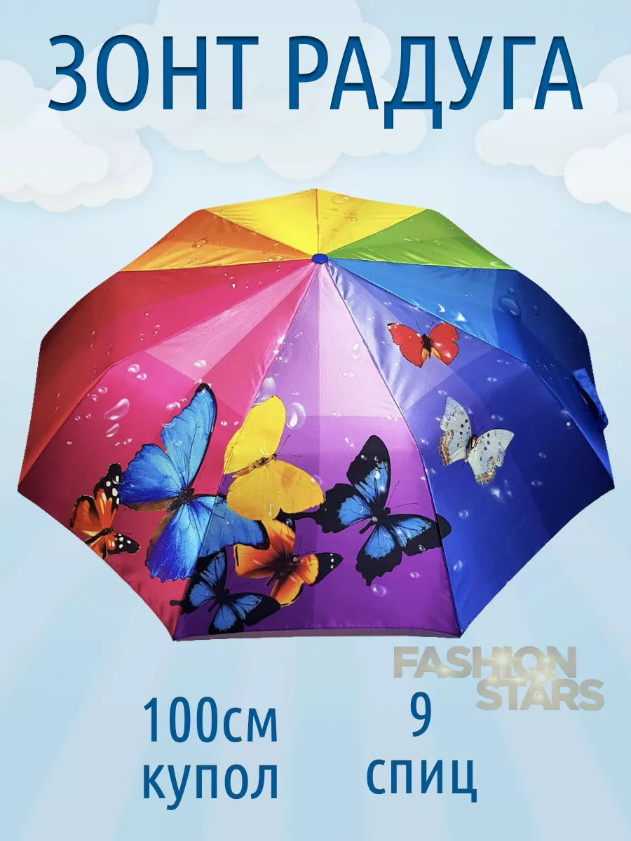 Зонт женский автомат Радуга 9спиц 100см Зонт складной легкий