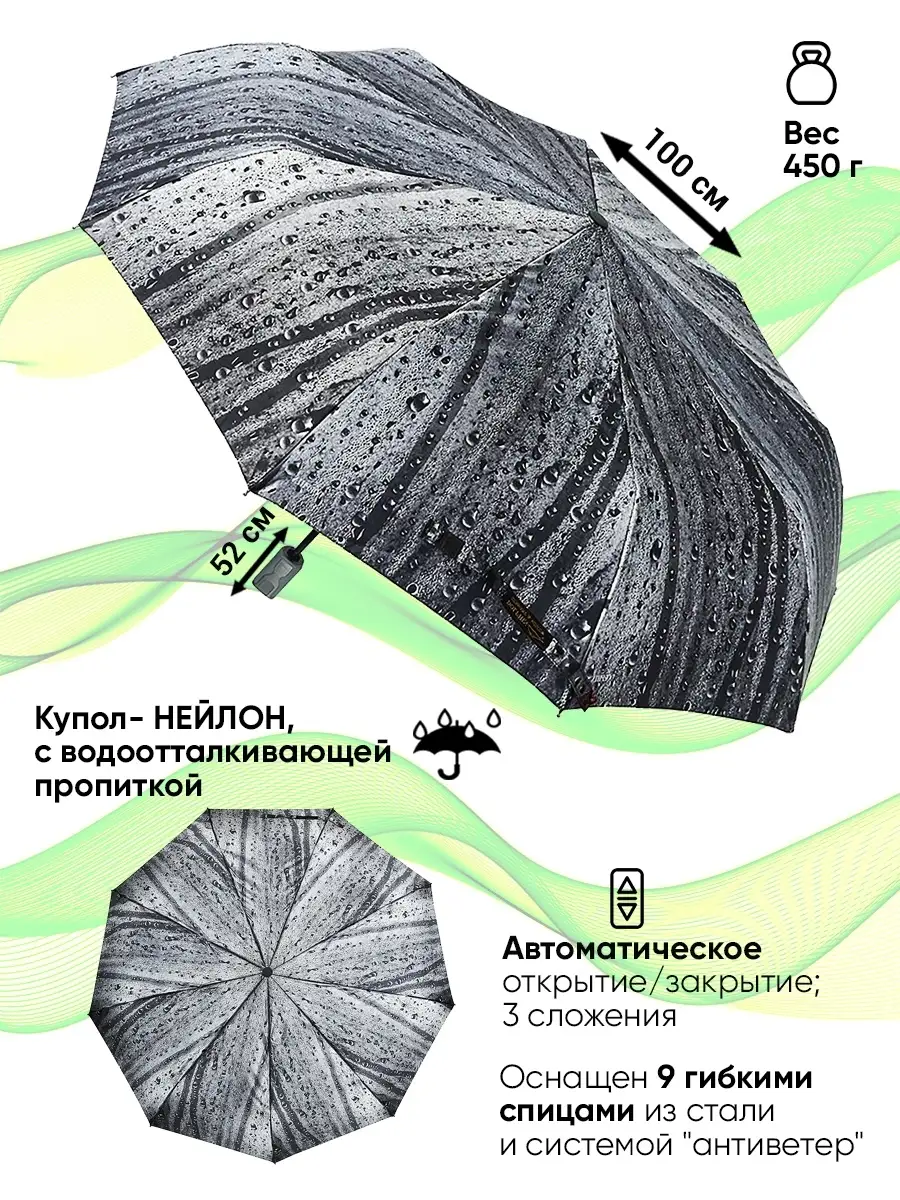 Тип зонта складной; автоматический; водоотталкивающая пропитка