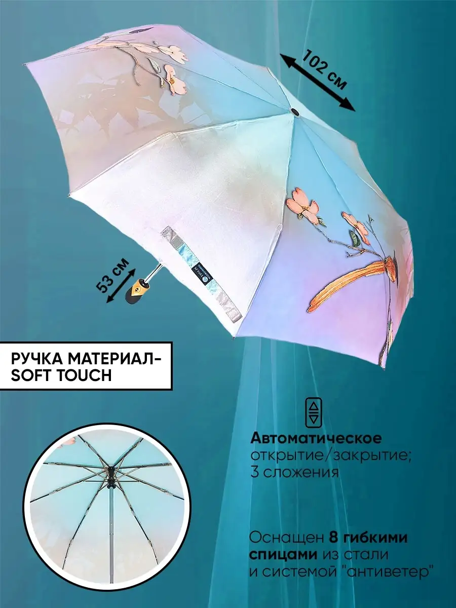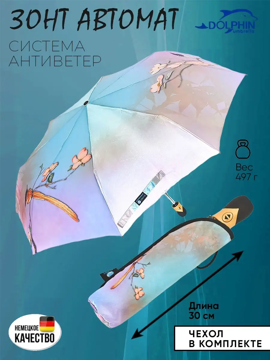 Описание: Женский складной зонт автоматический тм Planet - невероятно красивый, прочный, компактный, а значит очень удобный аксессуар, который всегда защитит вас от мокрого снега, дождя, знойного солнца или ветра. Стильный зонт имеет небольшой размер и свободно помещается в женской сумочке (сумку) или рюкзаке, что делает его идеальным выбором для девушек и женщин любого возраста. Благодаря небольшому весу и габаритам им сможет пользоваться девушка подросток (подростковый) и женщина любого возраста. Зонтики Planet имеют яркий оригинальный рисунок, что существенно отличает его от аналогичных зонтов других производителей. Такой дизайн всегда будет выделять вас на улице, и привлекать внимание прохожих. В плохую погоду будет поднимать вам настроение своим ярким дизайном. Сам купол изготовлен из мягкого, но прочного материала - сатин, его приятно держать в руках и использовать во время дождя. Дополнительно материал купола – сатин имеет водоотталкивающую пропитку, что позволяет зонту не впитывать влагу, во время дождя он не становится тяжелее и быстрее сохнет после дождя. Для производства каркаса автоматического зонта мы используем усиленный механизм немецкого производителя, благодаря которому зонт прослужит вам очень долгое время даря комфорт и радость использования. Облегченный механизм зонта с системой Антиветер / Антишторм, который не дает зонту сломаться даже в самый сильный ветер или ураган. При максимальном давлении на купол, спицы зонта рассчитаны на то, что бы перевернуть купол в обратную стороны. Эта система не дает сломать спицы или порвать купол. В комплект к зонту входит удобный чехлом для хранения, который выполнен в одном дизайне с куполом зонта. Купив красивый и качественный зонт один раз, вы будете испытывать комфорт использования зонта каждый раз при необходимости. Зонтик аксессуар складной подойдет на зиму, весну, лето и осень, защитит от мокрого снега, дождя, ветра и знойного солнца. Благодаря компактным размерам и удобной ручке зонт можно взять с собой на прогулку, повседневной поездки на работу, путешествию, в машину, в поход, дальнюю дорогу, прогулке на улице в парке и на даче в саду. Такой зонт это отличный и презентабельный подарок любимому человеку, близким людям, партнерам по бизнесу, коллегам. Выбрав zont в качестве подарка вы подчеркнете элегантный вкус, а так же важность и заботу по отношению к близким. Зонт Planet от мирового производителя Dolphin - Planet известного поставщика качественных зонтов по всему миру. Компания Долфин имеет представителей по всему миру, таким странам как Россия, Япония, США, Индия, Китай, европейские страны. Компания производит зонты уже более 30 лет и имеет огромный опыт в производстве. В ассортименте огромное количество зонтов с разным дизайном на выбор и мужчинам, и женщинам. Не упустите свой шанс приобрести качественный и надежный женский зонт, который будет не только защищать вас от непогоды, но и станет прекрасным дополнением к вашему стилю. Как важно испытывать удобство и комфорт даже в плохую непогоду. Сделайте заказ прямо сейчас и получите еще один аксессуар для комфортной и уютной повседневной жизни!