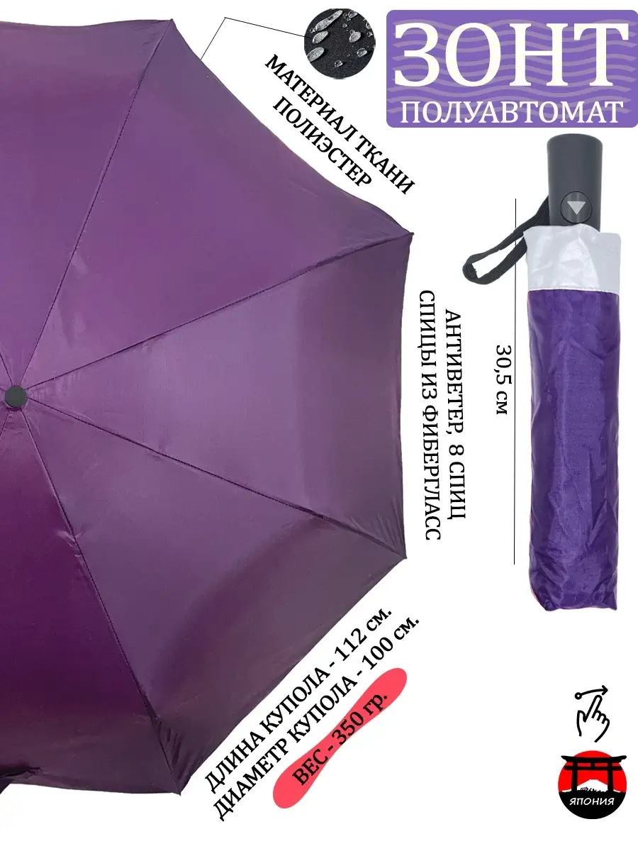 Описание: Классический однотонный двухсторонний женский зонт полуавтомат от ЯПОНСКОГО производителя Steki-Ame оснащён надёжным автоматическим механизмом, который удобен при раскрытии зонта, нажатием на кнопку. Складной зонт имеет прочный стальной каркас. У зонта 8 спиц комбинированных из стекловолокна (фибергласс) и металла, диаметр купола зонта 100 см. Внешний зонт купола яркий однотонный цвет а внутри серебристый, раскрасит дождливую погоду и добавят хорошего настроения! Зонт имеет двухсторонный яркий цвет что делает его особенным Зонтом для прогулок в парке с детьми в школу. Каркас зонтика сделан из самых надежных материалов стали и гибкого фибергласса на спицах. Система антиветер зонта защищает от поломок. Материал ткани купола полиэстер легко отталкивает воду. Открывается с кнопеи и закрывается вручную, что делат зонта безопасным при пользования подростком и бабушкам. Механизм работает очень плавно. Ручка не скользит в руке, прикреплен прочный шнурок. размер длина зонта небольшой везде можно таскать с собой. Порадуйте ваших близких подароком на день рождения день матери и другие праздники для любимой маме подруге жене коллеге бабушке дочке. подростку дедушке папе сыну внучке внуку любимой зонт
