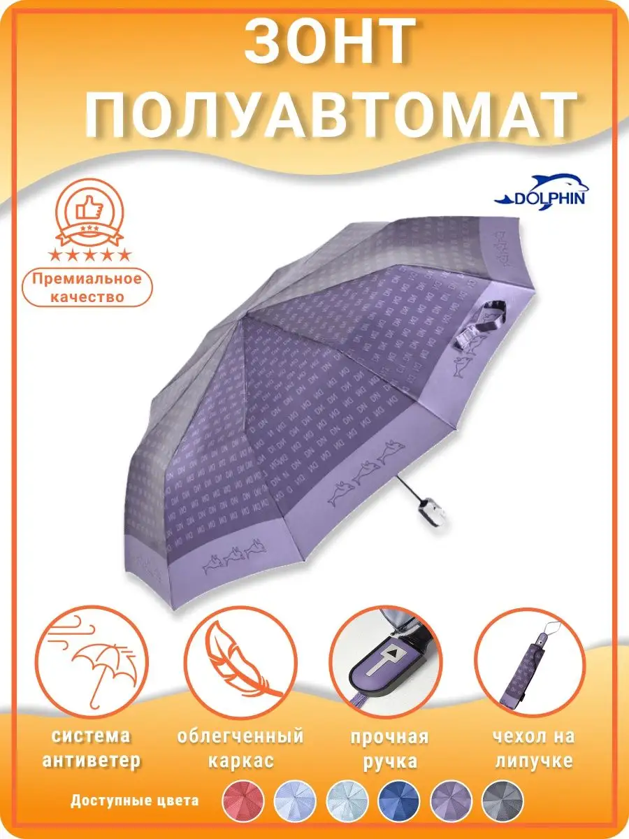 Описание: Женский складной зонт полуавтоматический тм Dolphin - ккрасивый, прочный, компактный, а значит очень удобный аксессуар, который всегда защитит вас от мокрого снега, дождя, знойного солнца или ветра. Стильный зонт имеет небольшой размер и свободно помещается в женской сумочке (в сумку) или рюкзаке, что делает его идеальным выбором для девушек и женщин любого возраста. Благодаря небольшому весу и габаритам им сможет пользоваться девушка подросток (подростковый) и женщина любого возраста. Зонтики женские полуавтомат Dolphin имеют яркий оригинальный рисунок, что существенно отличает его от аналогичных зонтов других производителей. Такой дизайн всегда будет выделять вас на улице, и привлекать внимание прохожих. В плохую погоду будет поднимать вам настроение своим ярким дизайном. Сам купол большой изготовлен из мягкого, но прочного материала - сатин, его приятно держать в руках и использовать во время дождя. Дополнительно материал купола – сатин имеет водоотталкивающую пропитку, что позволяет зонту не впитывать влагу, во время дождя он не становится тяжелее и быстрее сохнет после дождя. Для производства каркаса полуавтоматического зонта мы используем усиленный механизм немецкого производителя, благодаря которому зонт прослужит вам очень долгое время даря комфорт и радость использования. Облегченный механизм зонта с системой Антиветер / Антишторм, который не дает зонту сломаться даже в самый сильный ветер или ураган. При максимальном давлении на купол, спицы зонта рассчитаны на то, что бы перевернуть купол в обратную стороны. Эта система не дает сломать спицы или порвать купол. Зонт полный полуавтомат. В комплект к зонту входит удобный чехлом для хранения в сложенном виде, который выполнен в одном дизайне с куполом зонта. Купив ккрасивый и качественный зонт один раз, вы будете испытывать комфорт использования зонта каждый раз при необходимости. Зонтик аксессуар складной подойдет на зиму, весну, лето и осень, защитит от мокрого снега, дождя, ветра и знойного солнца. Благодаря компактным размерам и удобной ручке маленький зонт можно взять с собой на прогулку, повседневной поездки на работу, путешествию, в машину, в поход, дальнюю дорогу, прогулке на улице в парке и на даче в саду. Такой зонт это отличный и презентабельный подарок любимому человеку, близким людям, партнерам по бизнесу, коллегам. Выбрав zont в качестве подарка вы подчеркнете элегантный вкус, а так же важность и заботу по отношению к близким. Легкие женские зонты Dolphin от мирового производителя Dolphin - Planet известного поставщика качественных зонтов из стали по всему миру. Компания Долфин имеет представителей по всему миру, таким странам как Россия, Япония, США, Индия, Китай, европейские страны. Компания производит зонты уже более 30 лет и имеет огромный опыт в производстве. В ассортименте огромное количество зонтов с разным дизайном на выбор и мужчинам, и женщинам. Не упустите свой шанс приобрести качественный и надежный женский зонт, который будет не только защищать вас от непогоды, но и станет прекрасным дополнением к вашему стилю. Как важно испытывать удобство и комфорт даже в плохую непогоду. Сделайте заказ прямо сейчас и получите еще один аксессуар для комфортной и уютной повседневной жизни!
