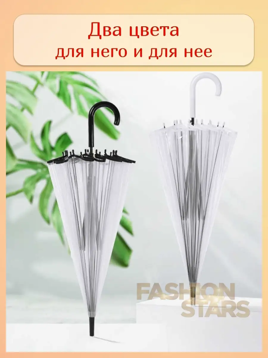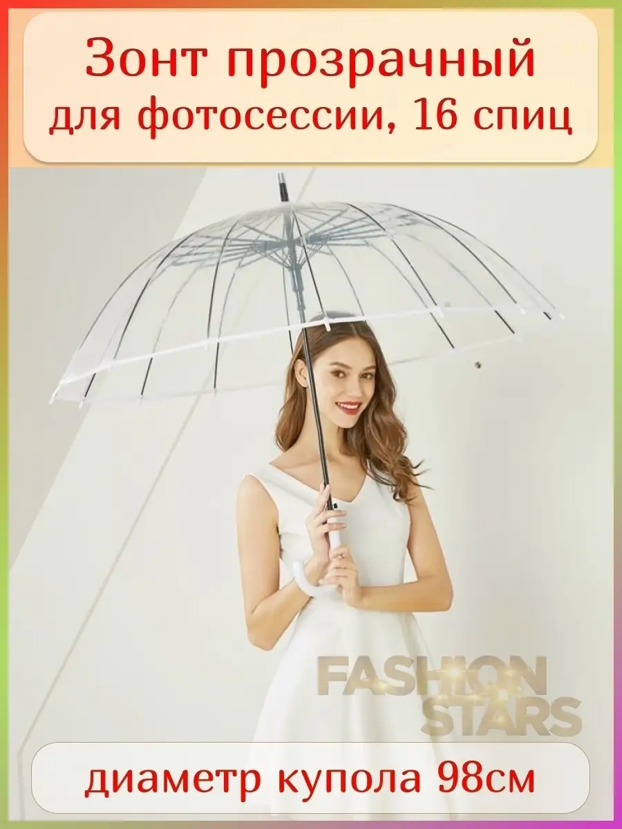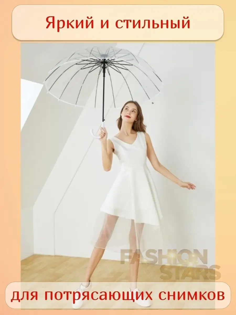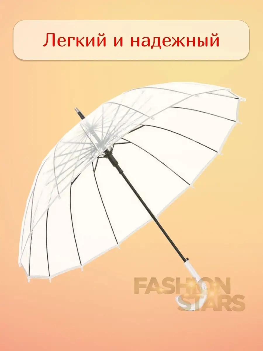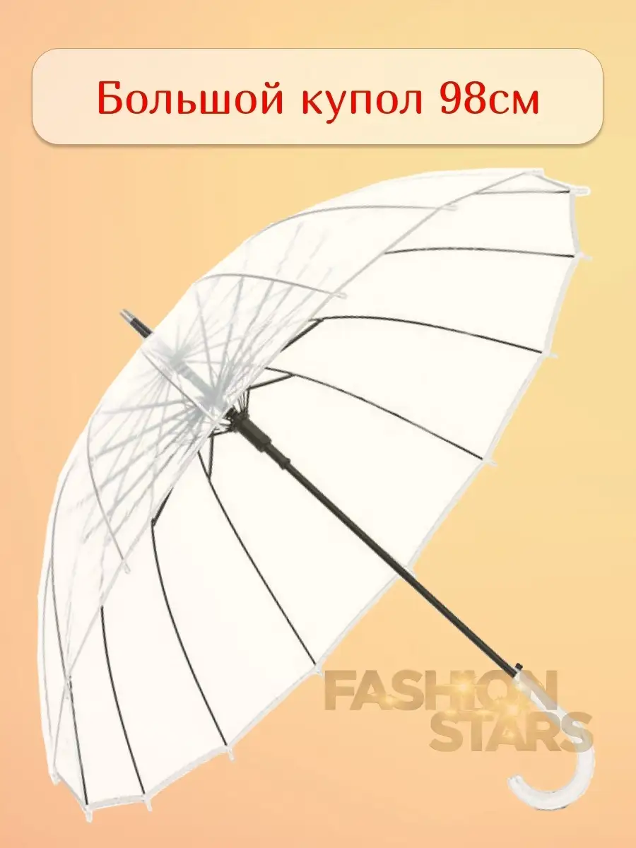 Зонт женский прозрачный трость 98 см для фотосессии легкий