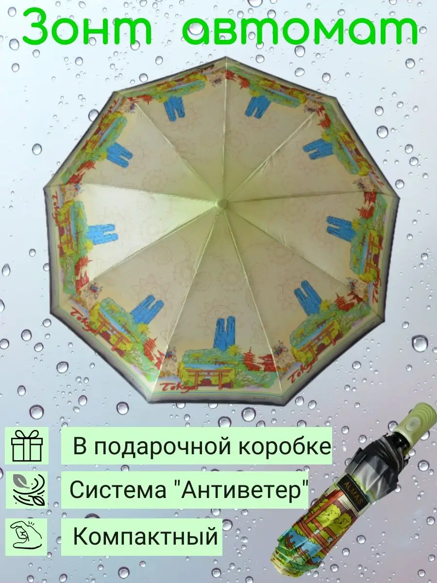 Описание: Автоматический классический зонт оснащён надёжным механизмом, открывается и закрывается простым нажатием на кнопку. Зонтик имеет прочный каркас с системой антиветер (антишторм) и укроет вас от дождя и ветра в любую непогоду. Стальной каркас с антикоррозионным покрытием, купол аксессуара диаметром 100 см с 9 спицами, удобная ручка 59 см. Женский зонт полный автомат выполнен из шелковистой ткани. Маленький в сложенном виде - 30 см. и удобно поместится в сумке. Большой купол выполнен из сатина с водоотталкивающей пропиткой. Идеальный подарок женщине, любимой девушке на день рождения, для бабушки, мамы или коллеги.