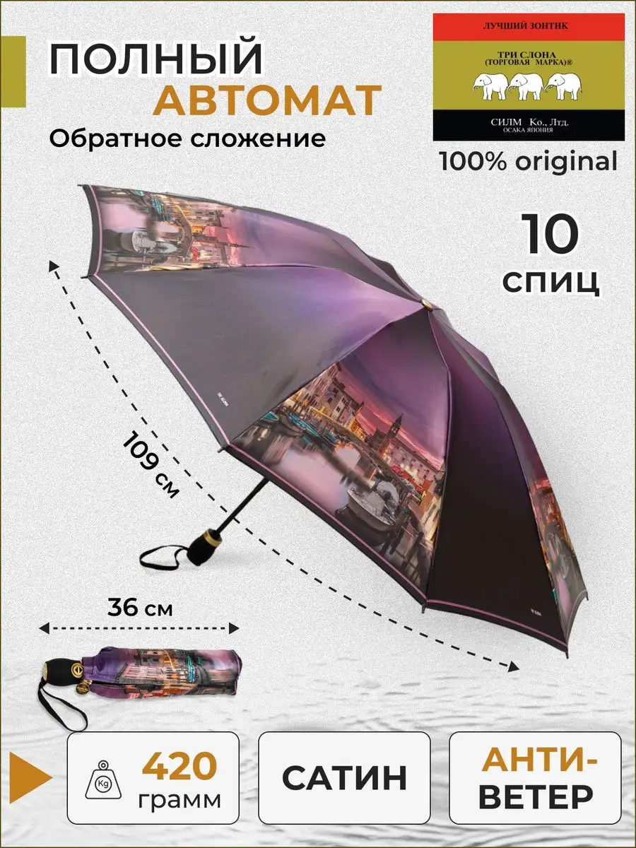 Описание: Женский складной зонт от бренда Три Слона подойдет для защиты от дождя и солнца и станет отличным подарком для любимой, жены, мамы, дочки, учителя. Характеристики: полный автомат, 10 спиц, вес 430 г, 3 сложения, длина в сложенном виде 30 см, фактический диаметр купола 110 см (по низу от спицы до спицы), материал купола Сатин (100% Полиэстер), материал ручки пластик (soft-touch), длина ручки 6 см, зонт закрывается на кнопку, чехол закрывается на молнию. Каркас и спицы выполнены из стали, алюминия, фибергласса. В комплекте зонт и чехол. Во все наши зонты встроена система антиветер, при сильных порывах ветра зонт выворачивается, амортизируя спицы и защищая их от поломки. На зонты бренда Три Слона действует гарантия 6 месяцев, гарантия распространяется на производственный брак и не распространяется на механические повреждения, в том числе на поломку спиц в процессе эксплуатации. Несмотря на самые современные материалы и конструктивные решения, при очень сильных порывах ветра спицы могут сломаться, вечных вещей человечество еще не изобрело. Зонтик станет лучшим помощником в непогоду, в отпуске, на пляже, в поездке, на прогулке, в авто, в багажник или бардачок машины. Благодаря тефлоновой пропитке, зонт не только отталкивает воду, но и защищает от вредного воздействия ультрафиолета, от солнца, а значит его можно использовать как пляжный зонт. Вы сможете сделать действительно нужный подарок на день рождения, 8 марта, 23 февраля, 14 февраля, день влюбленных, новый год, день учителя, 1 сентября, день матери, благодаря фирменному подарочному пакету, который вы получите при покупке зонта. Три Слона — это знаменитый во всем мире и постсоветском пространстве бренд зонтов, качество которых проверено годами, он обеспечит долгую службу и станет незаменимым защитником от дождя. Мы являемся официальным представителем бренда Три Слона, у нас вы можете купить 100% оригинальную продукцию, которая имеет фирменные навесные и вшивные бирки, заводскую выштамповку на стержне, голографическую наклейку, что подтверждает безупречное качество. В нашем ассортименте представлено большое количество разнообразных и стильных зонтов на любой вкус.