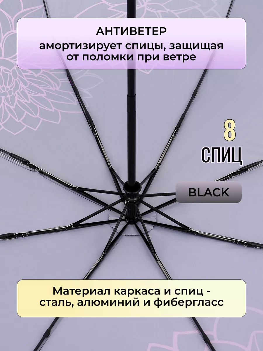 Доп. опции зонта антиветер; 8 спиц; зонт закрывается на кнопку, чехол закрывается на кнопку