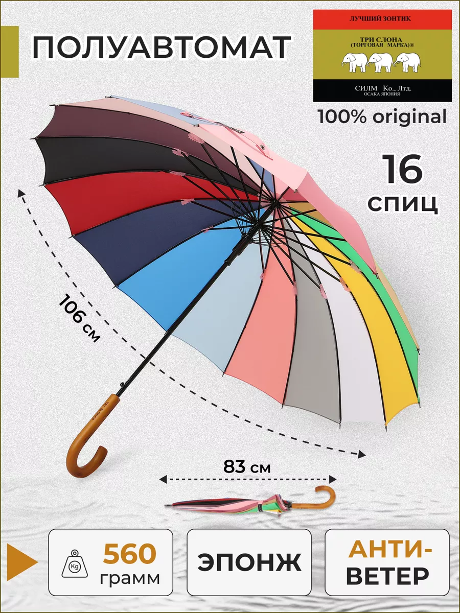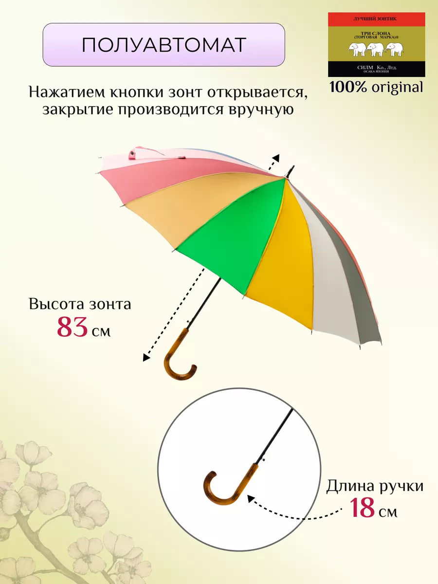 Зонт женский трость полуавтомат