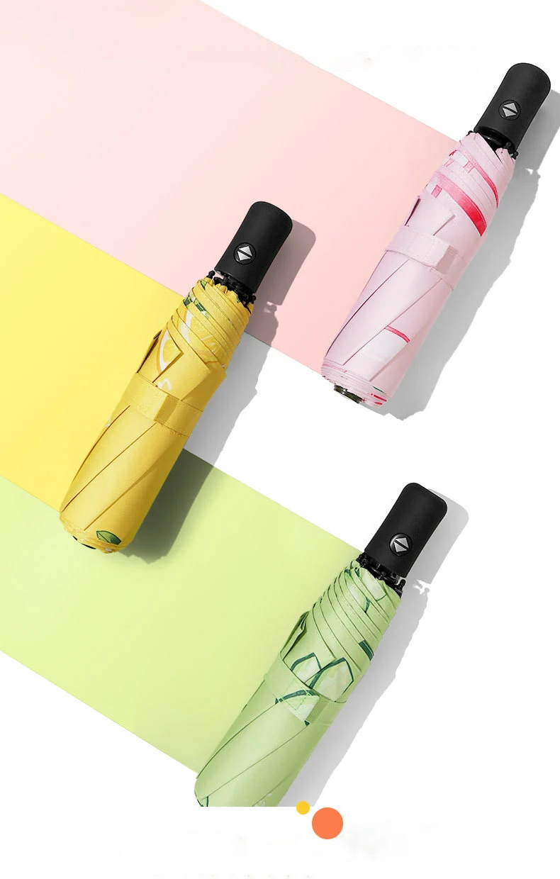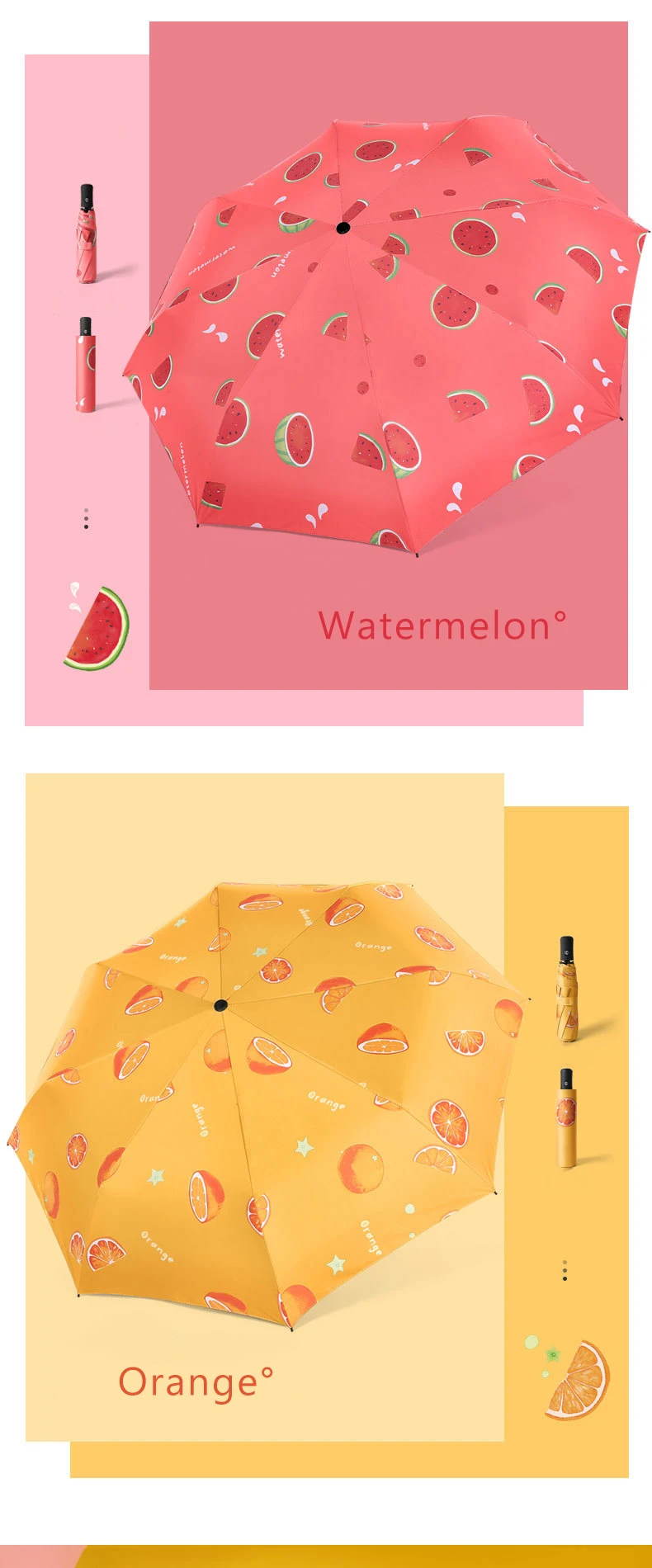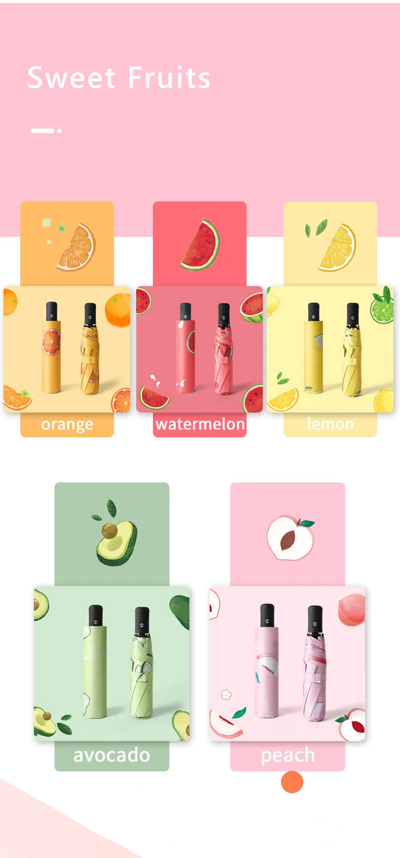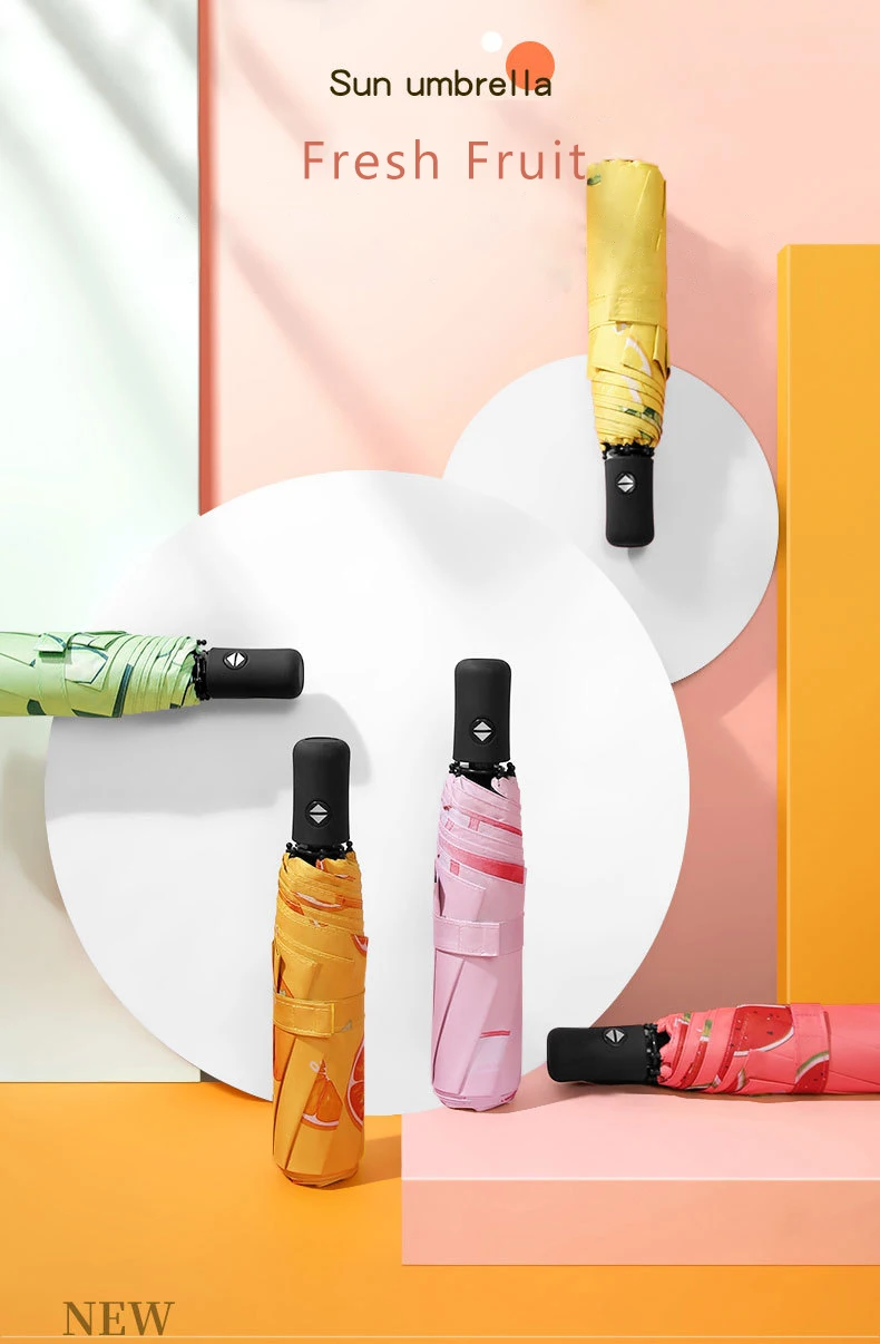 Автоматический зонт со свежими сладкими фруктами для мужчин и женщин. Черное покрытие внутри, барьер более 99% УФ, супер солнцезащитный крем.