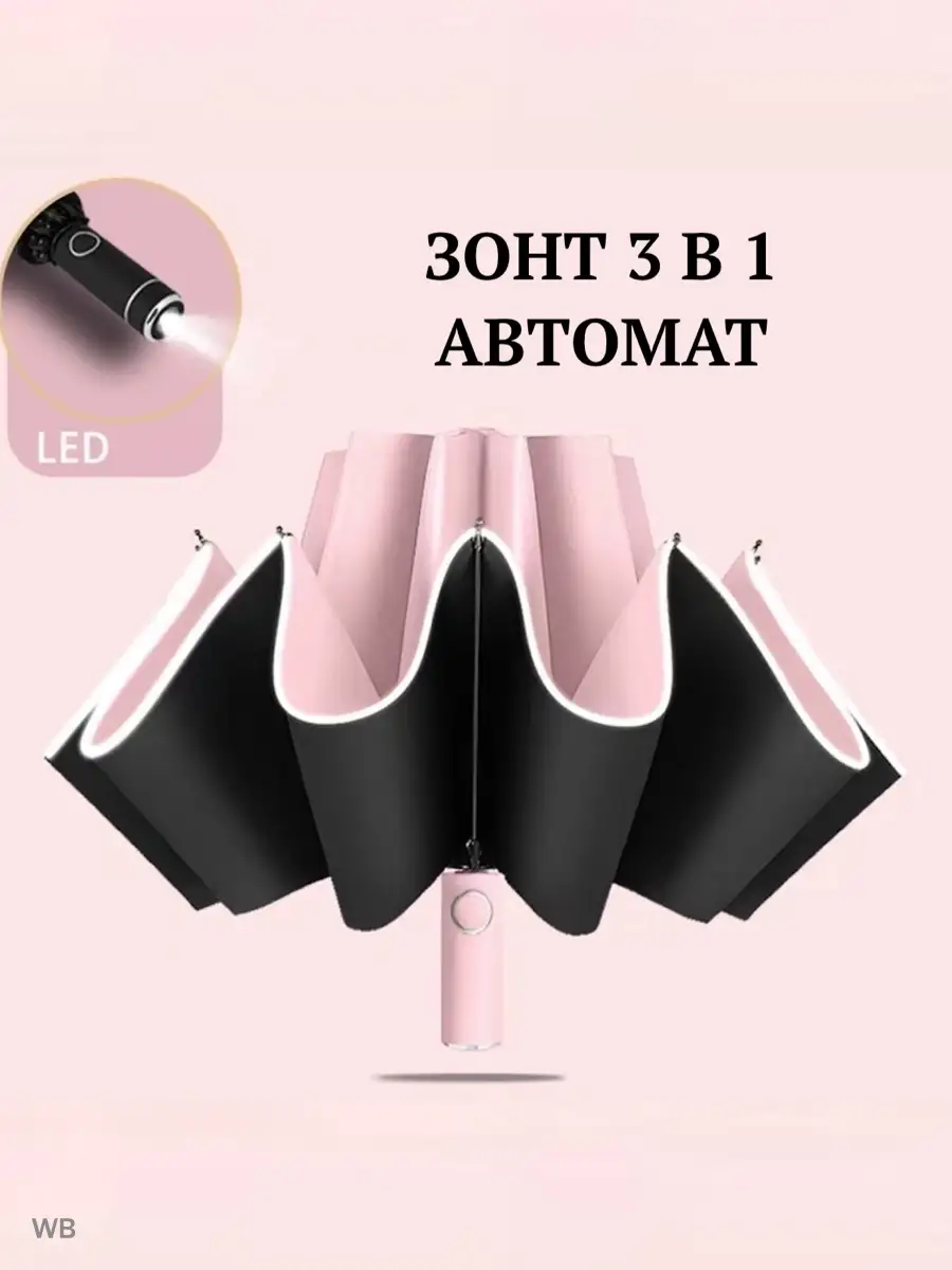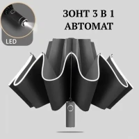 Описание: Зонт усиленной конструкции. Материал купола нейлон, складывается в обратную сторону - зеркально стандартному механизму. Такой тип складывания имеет преимуществ: капли дождя остаются внутри внешнего отделения в сложенном виде, что позволит сложить зонт и не намочить одежду. Механизм: автомат, 3 сложения, открывается и закрывается кнопкой. Конструкция зонта - это комплекс из десяти высокопрочных стальных 10 спиц с антикоррозийным покрытием. Купол - размером 105 см с системой "антиветер", имеет три сложения. В комплекте идет чехол для зонта. Такой зонт будет отличным подарком девушке, жене, маме или коллеге на праздник. Обратный зонт имеет светоотражающую окантовку, что сделает Вас заметными в темное время суток. Наш автоматический зонт имеет надёжную конструкцию и хорошо показывает себя в ветренную погоду.